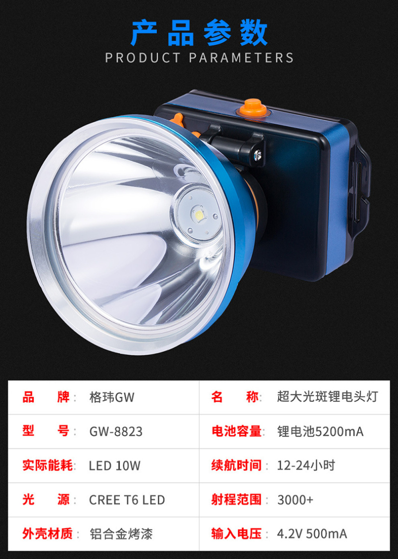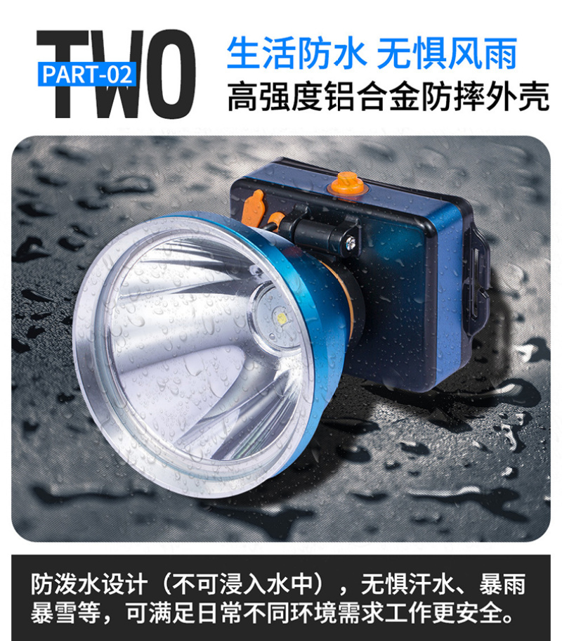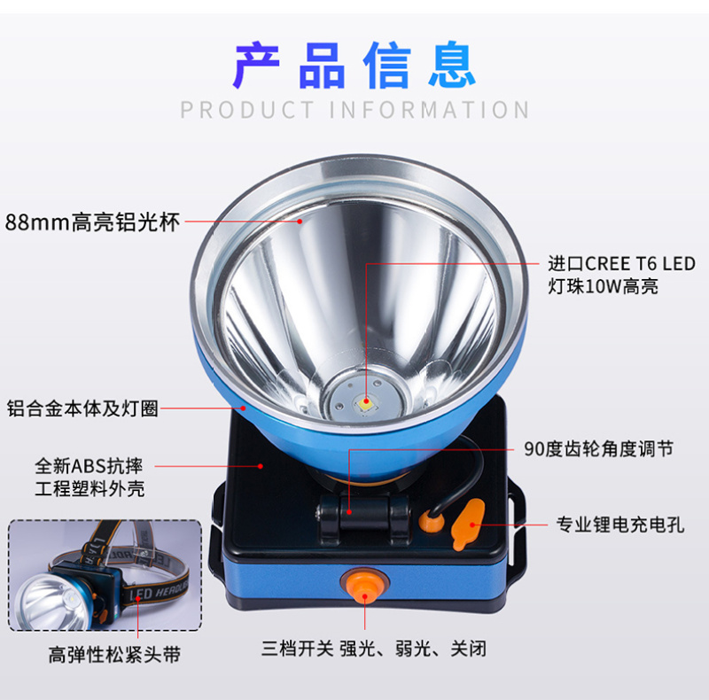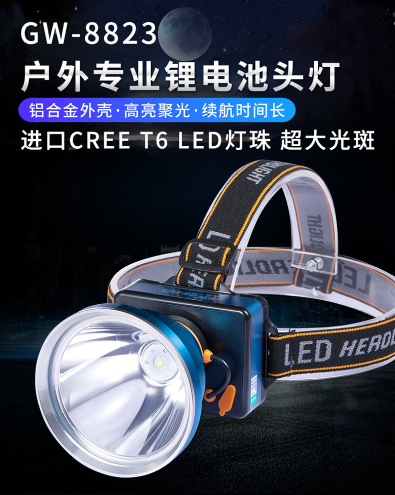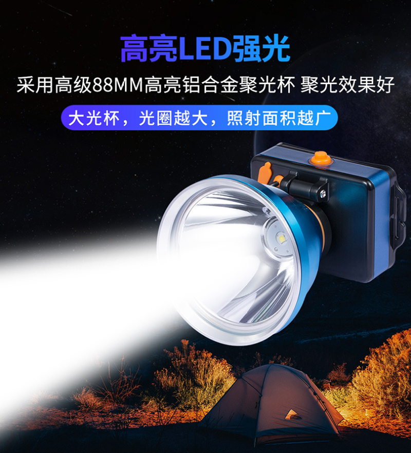 夜钓头灯黄光88mm大灯杯铝合金强光高远射程