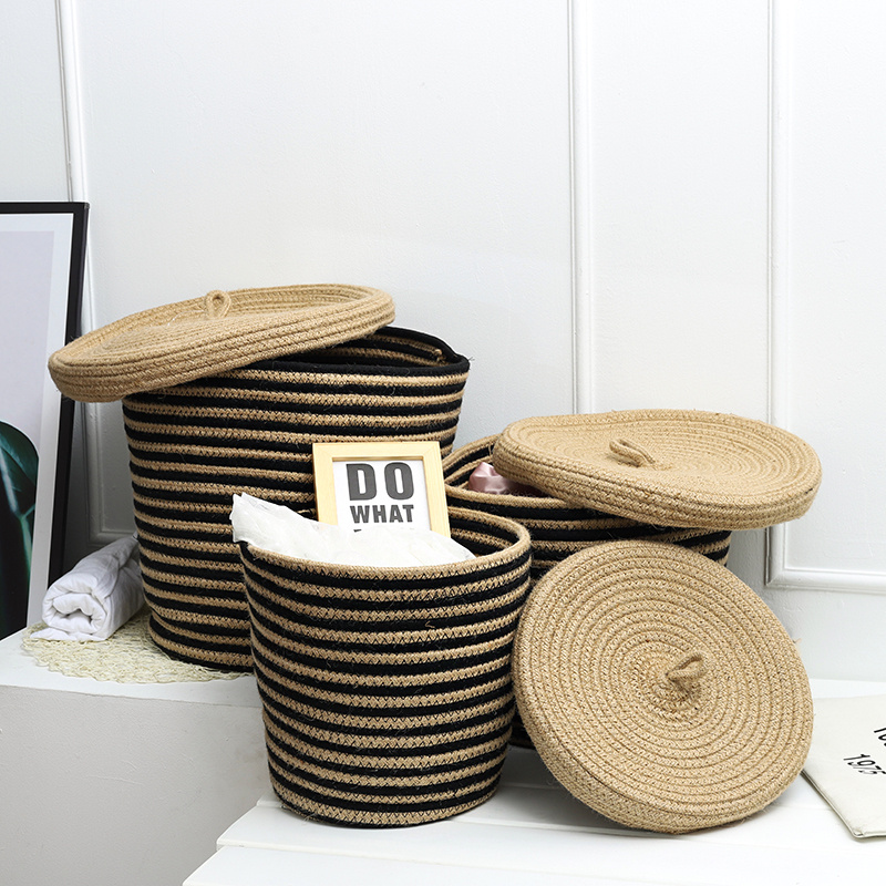 北欧田园风棉绳筐 衣物玩具整理草编收纳筐 防尘收纳