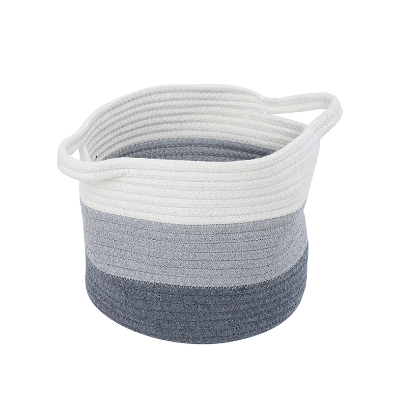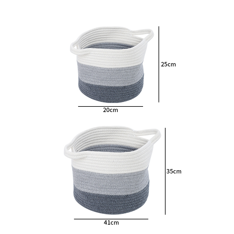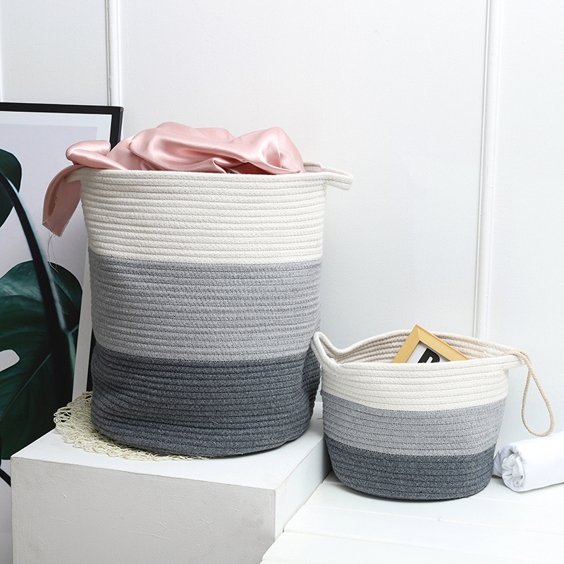 亚马逊爆款混色拼接棉绳篮 大容量脏衣篓 环保儿童玩具收纳筐