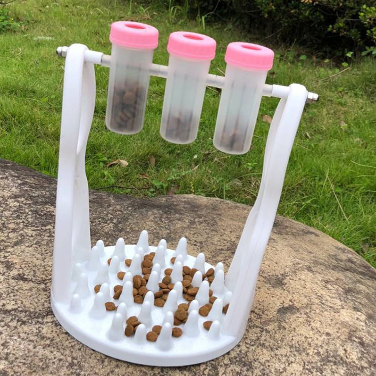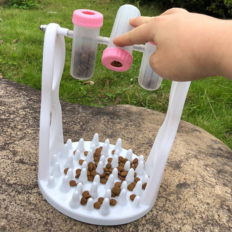 宠物益智玩具 转动杯子让杯子里的粮食掉下来促进宠物对杯子转动的乐趣 底部搭配慢食盆使得宠物不会狼吞虎咽的很快吃完这样可以防止宠物肥胖