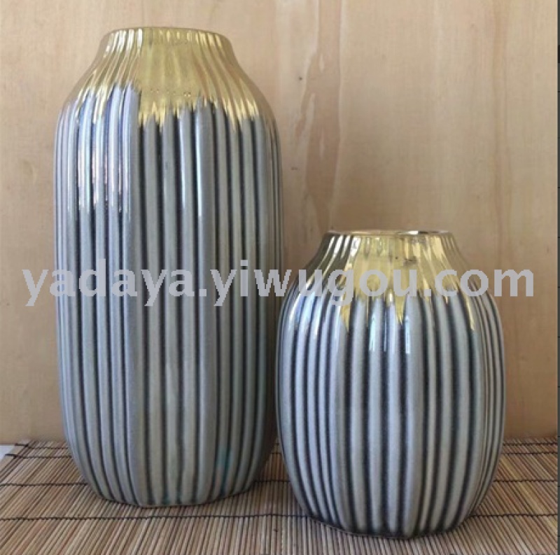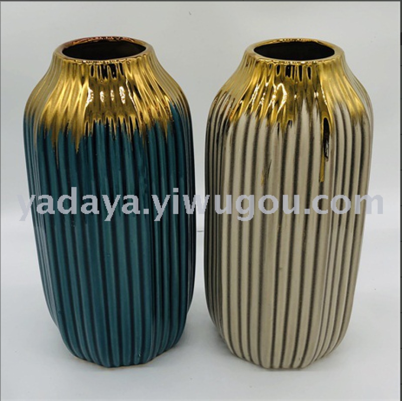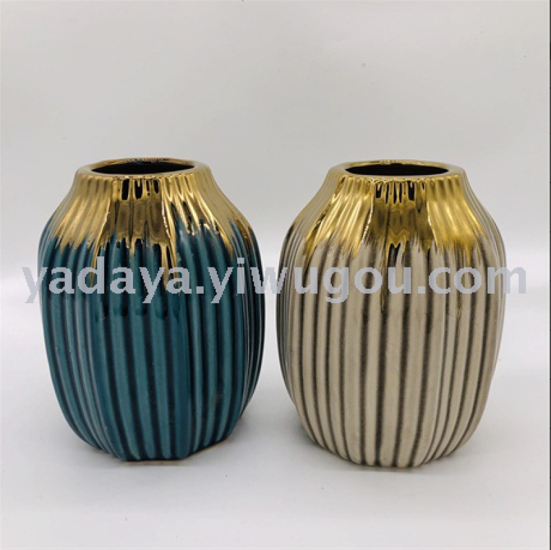 北欧轻奢金边祖母绿墨绿陶瓷花盆花瓶摆件创意个性网红裂纹北欧
