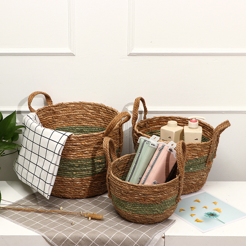 草编收纳筐套装 脏衣物收纳篮 家居桌面杂物收纳小号大号篮子