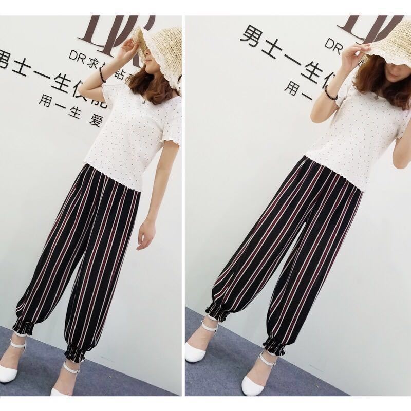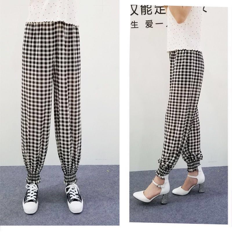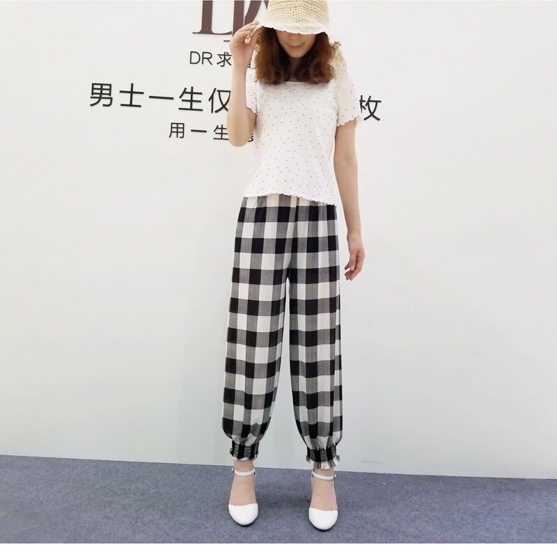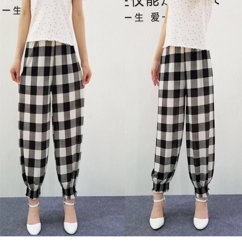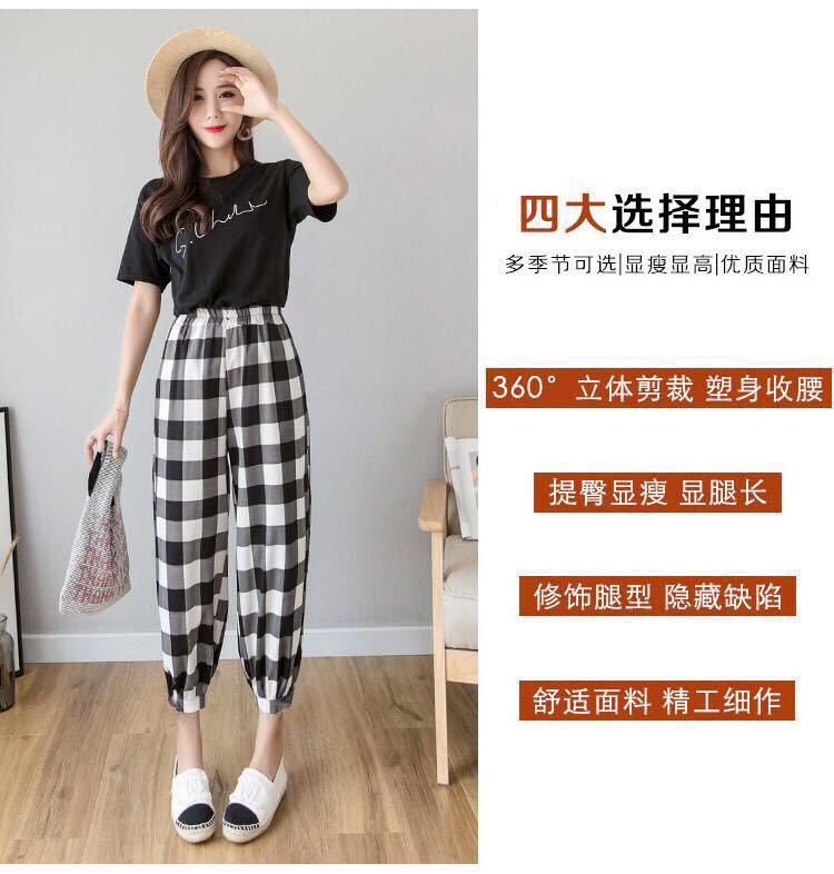 ins格子裤女夏季新款学生韩版宽松薄款九分高腰直筒休闲哈伦裤女