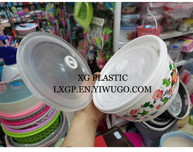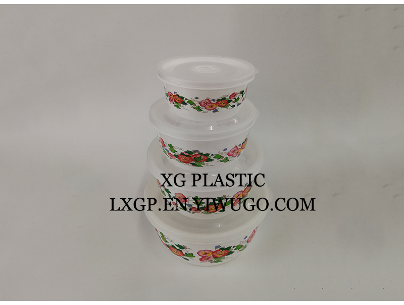 保鲜盒塑料印花时尚四件套保鲜盒圆形厨房冰箱食品储物盒收纳盒