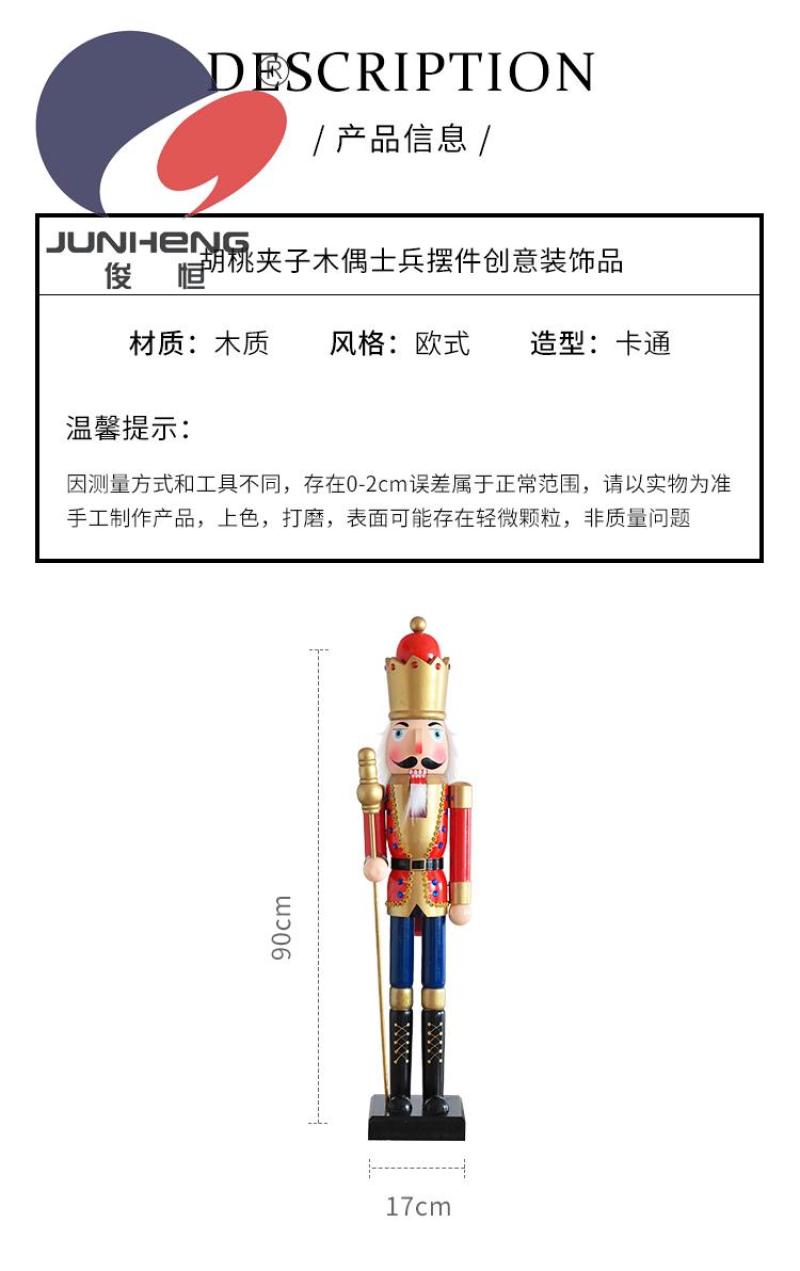 俊恒90CM欧式彩绘木偶人商场展厅开业装饰摆件胡桃夹子木质工艺品