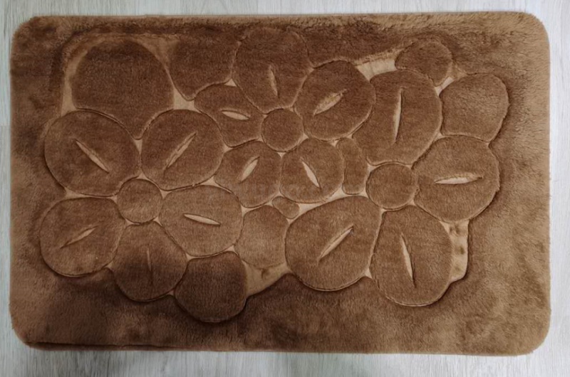 厂家直销3D立体压花马桶地垫三件套 浴室垫法兰绒单色压花吸水垫