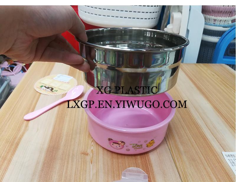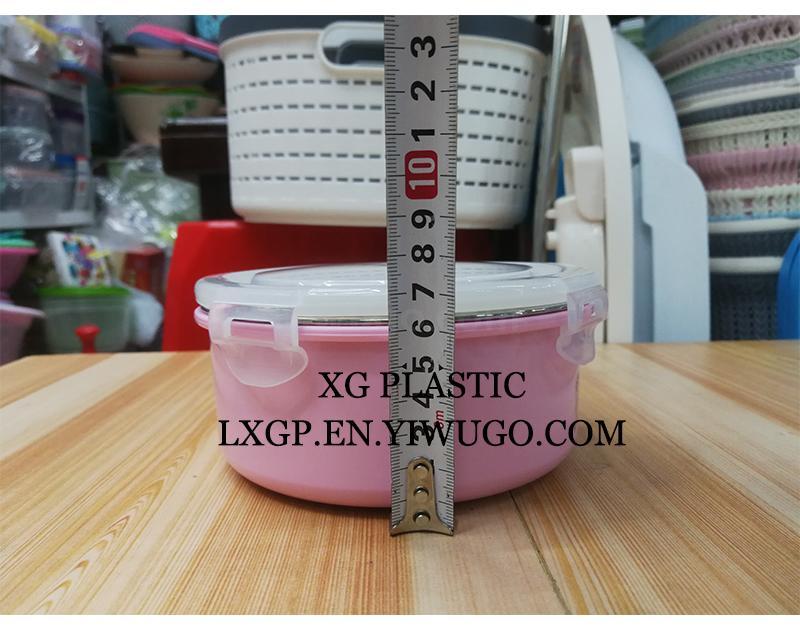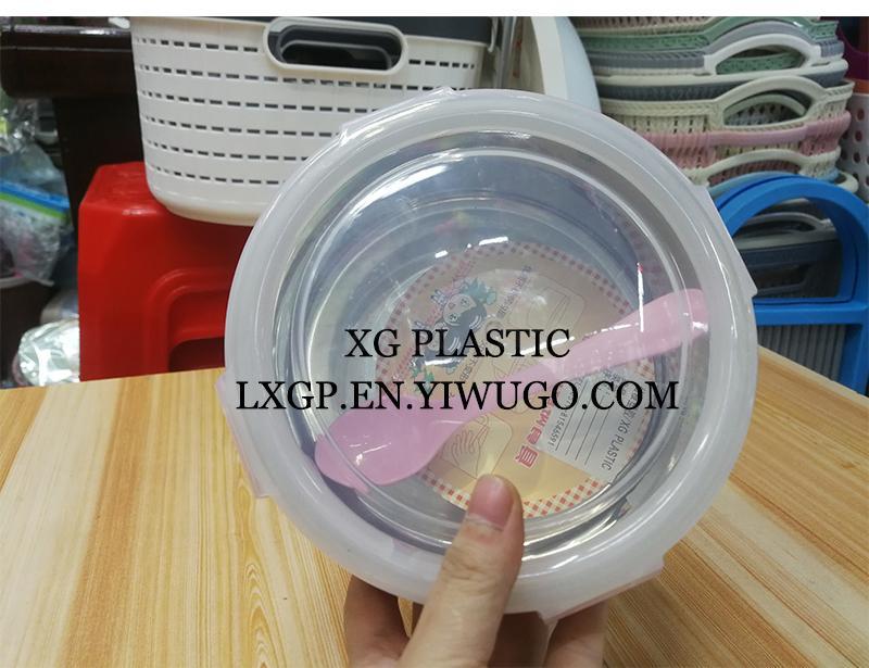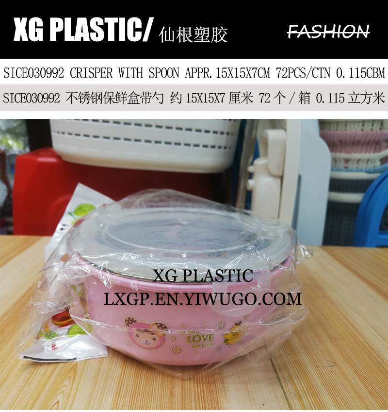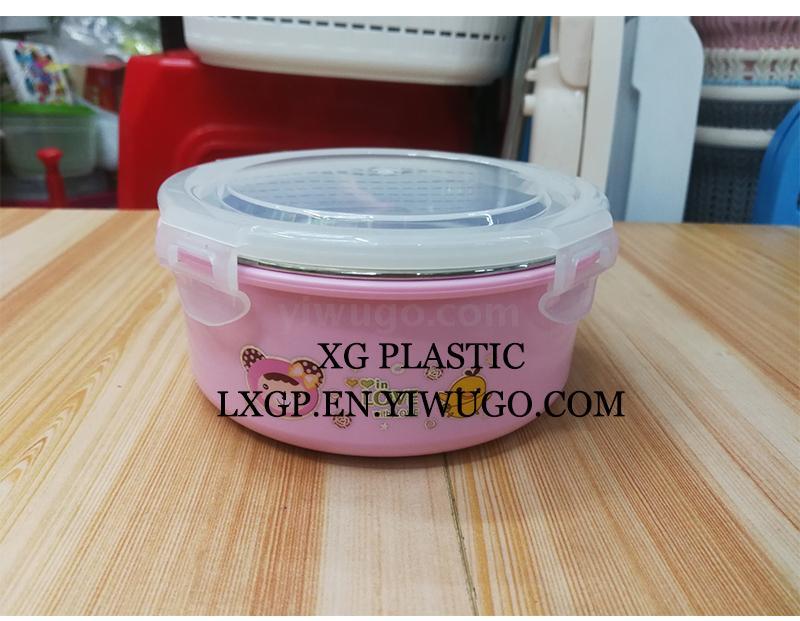 不锈钢保鲜盒饭盒带盖带勺圆形餐盒可爱印花冰箱食品保鲜盒热销