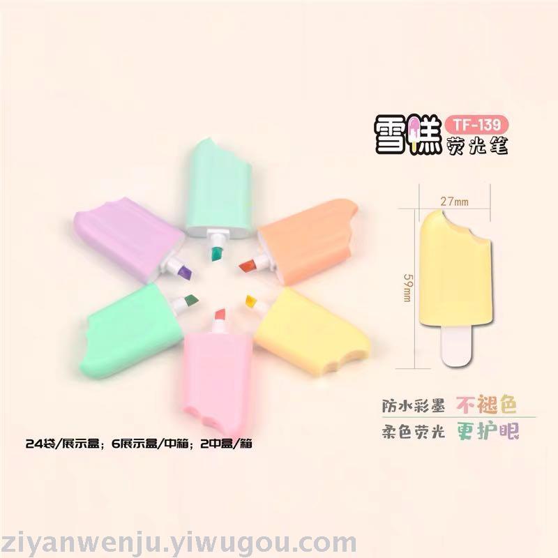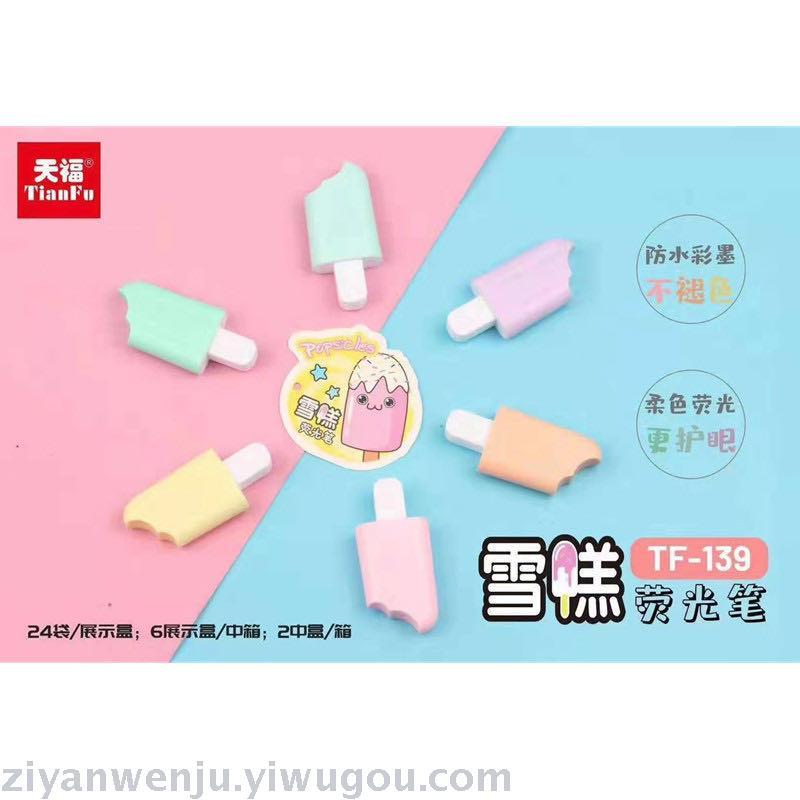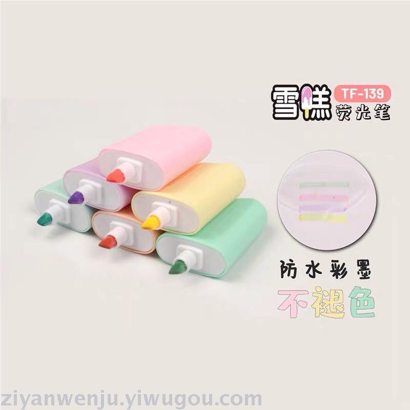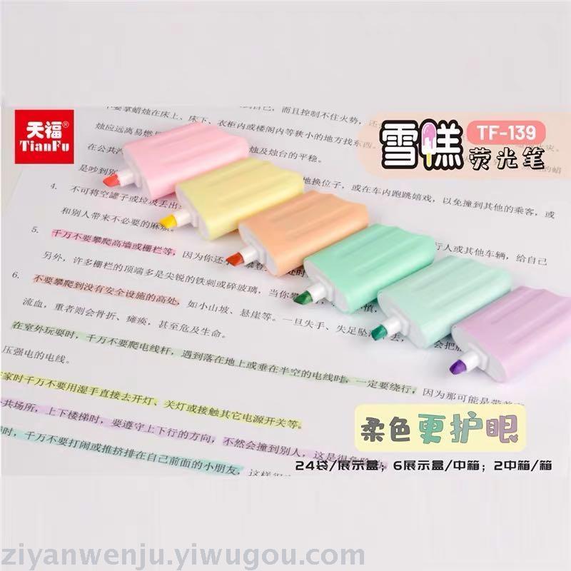 天福可爱雪糕荧光笔6支套装马克龙色迷你划重点标记涂鸦笔