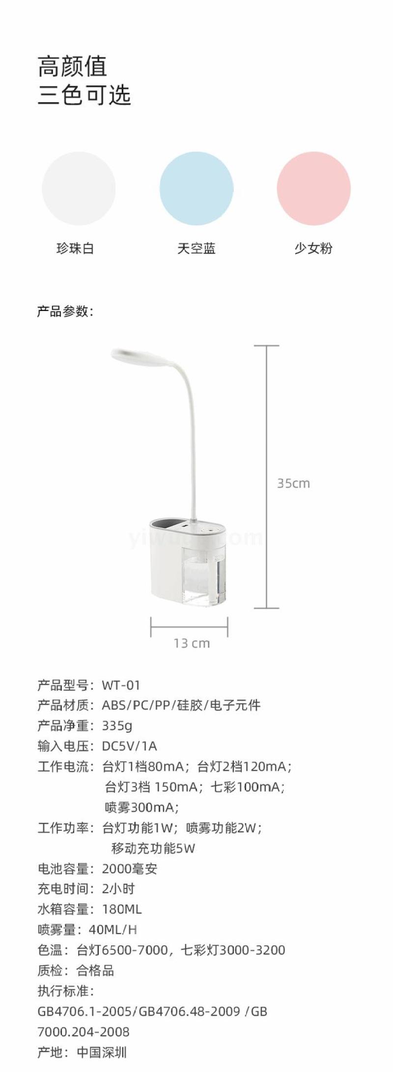 创意新品简素加湿器台灯 家用usb护眼台灯 学生宿舍加湿小夜灯