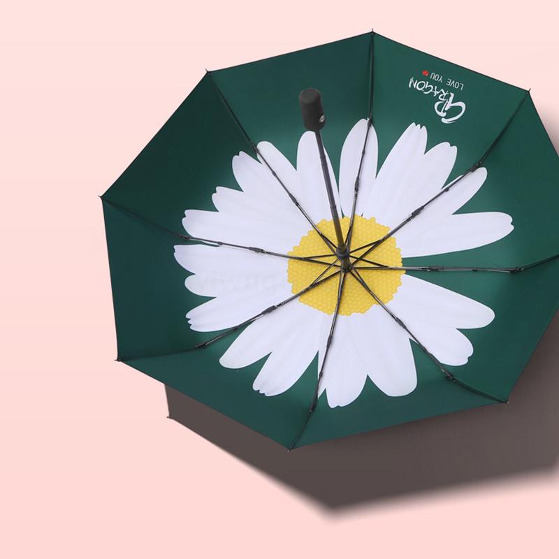 网红全自动数码印全遮阳三折小雏菊黑胶晴雨伞GD同款自开收雨伞