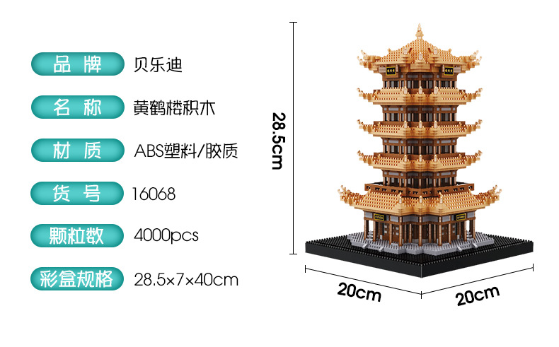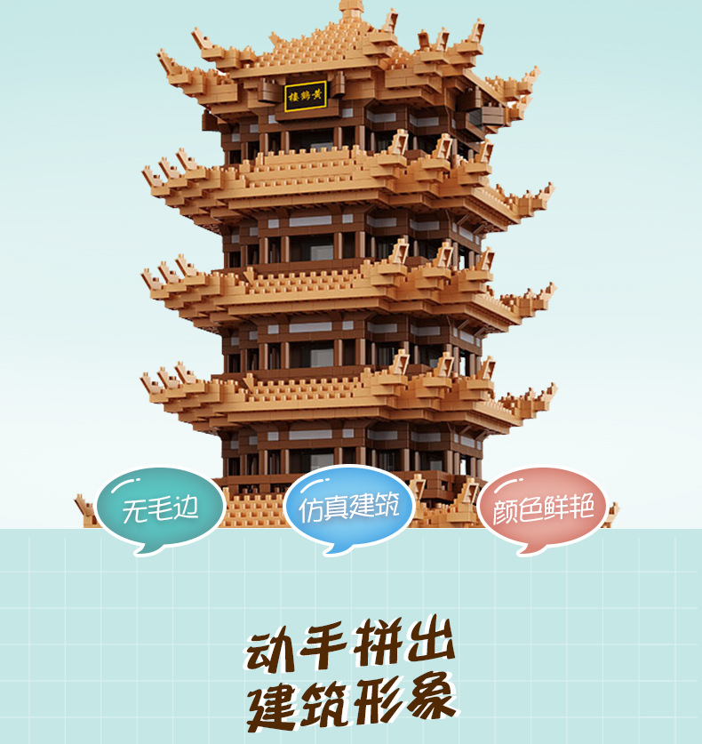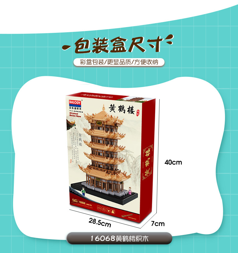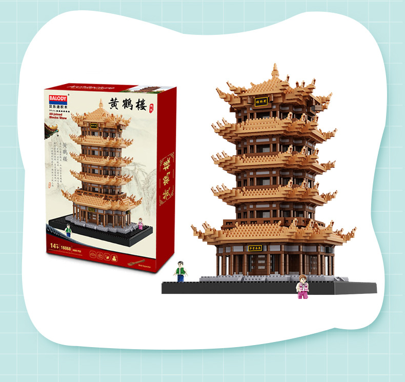 *BALODY贝乐迪16068 建筑系列黄鹤楼拼装积木 小颗粒拼插积木玩具