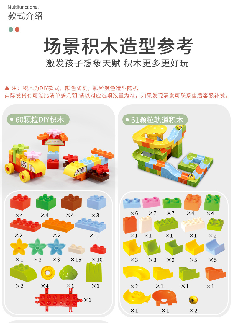 | Height-Increasing [60 Particles DIY +168 Playground +61 Tracks +4 Storage Bucket 】 +1 Chair(可增高【60颗粒DIY+168游乐场+61轨道+4收纳桶】+1椅子) | USD $27.59 | 998 piece available |