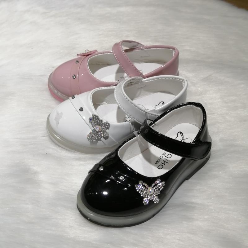 儿童女孩蝴蝶结款软底防滑透气魔术贴凉鞋女宝宝小皮鞋