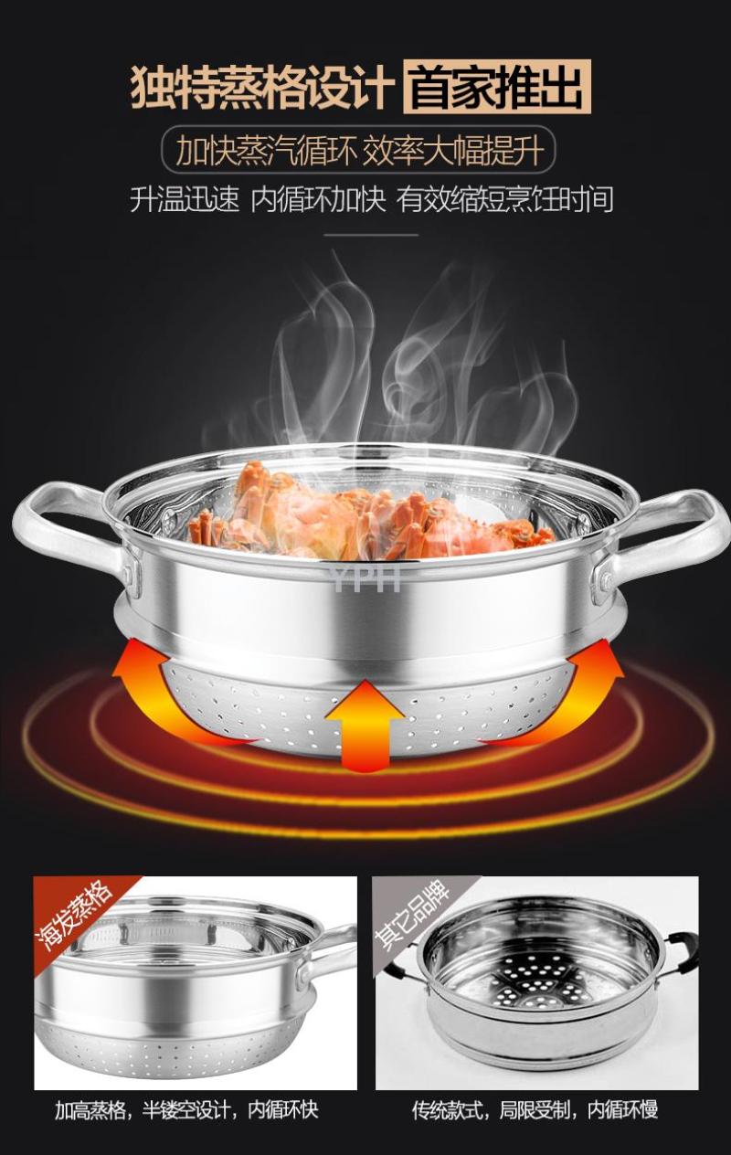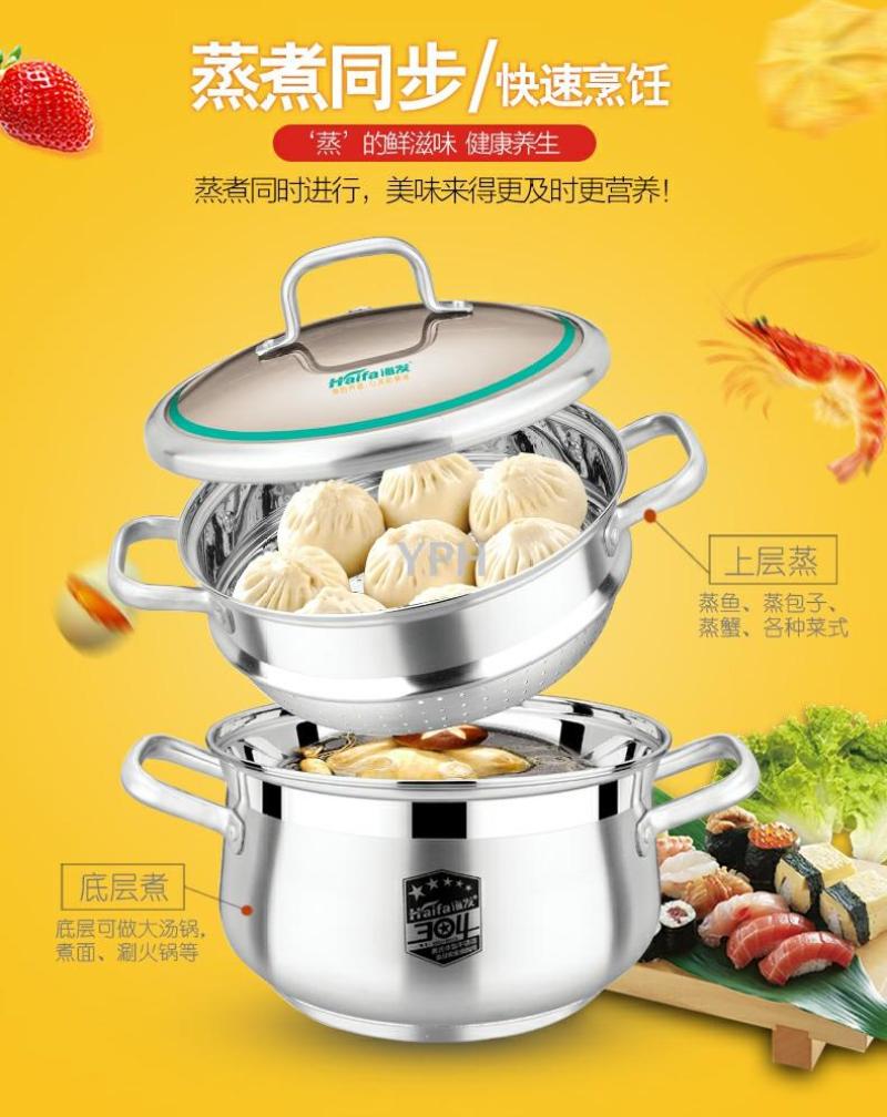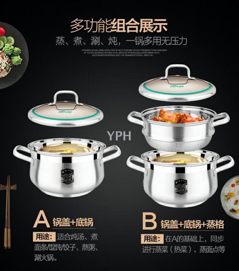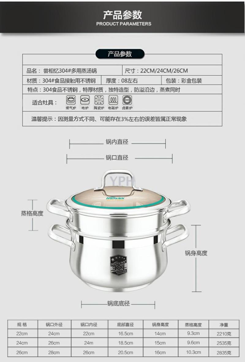 外贸超市尝相忆304蒸汤锅加厚汤锅双层蒸锅二层汤锅复底汤火锅