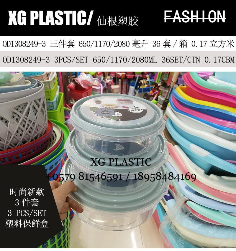 三件套保鲜盒圆形优质塑料食品储物盒厨房冰箱收纳盒透明保鲜盒