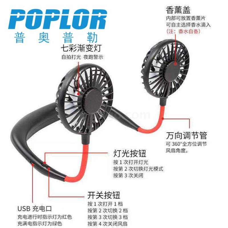 懒人挂脖式风扇 便携式迷你风扇折叠USB充电运动风扇创意礼品