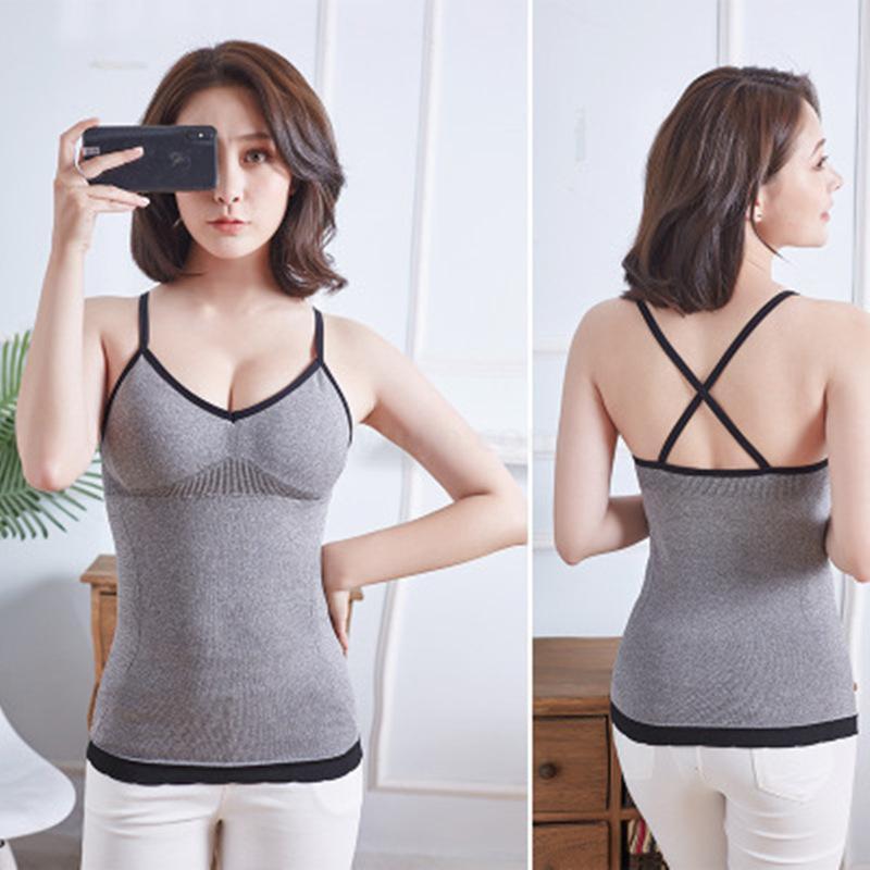 无缝V领吊带背心无钢圈交叉美背裹胸长款修身打底