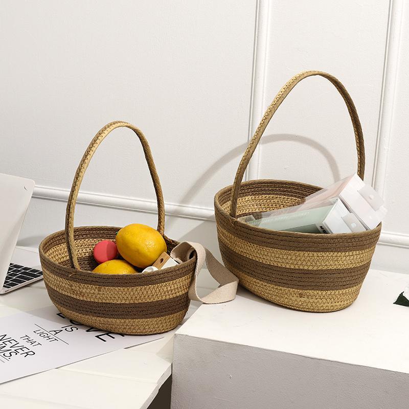 编织纸绳篮 果蔬零食手提篮客厅卧室桌面收纳篮 采购菜篮子