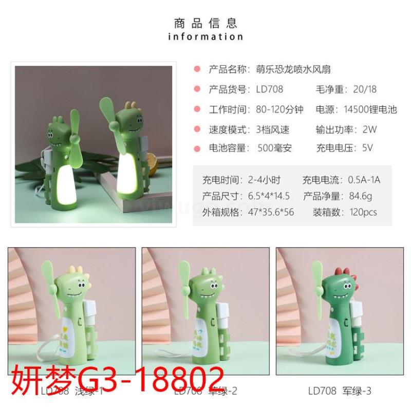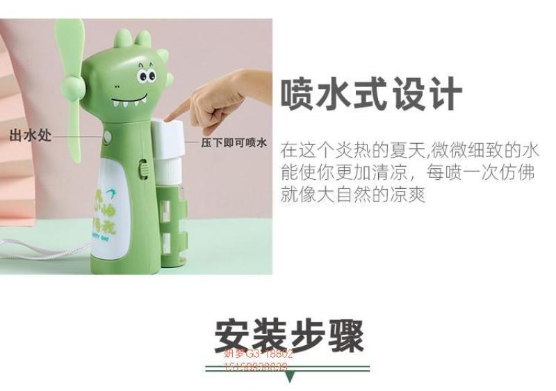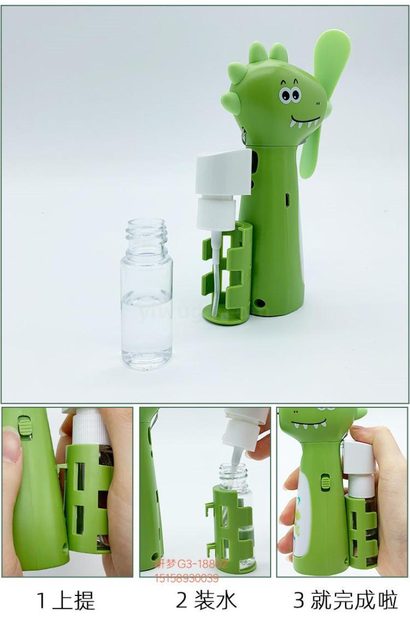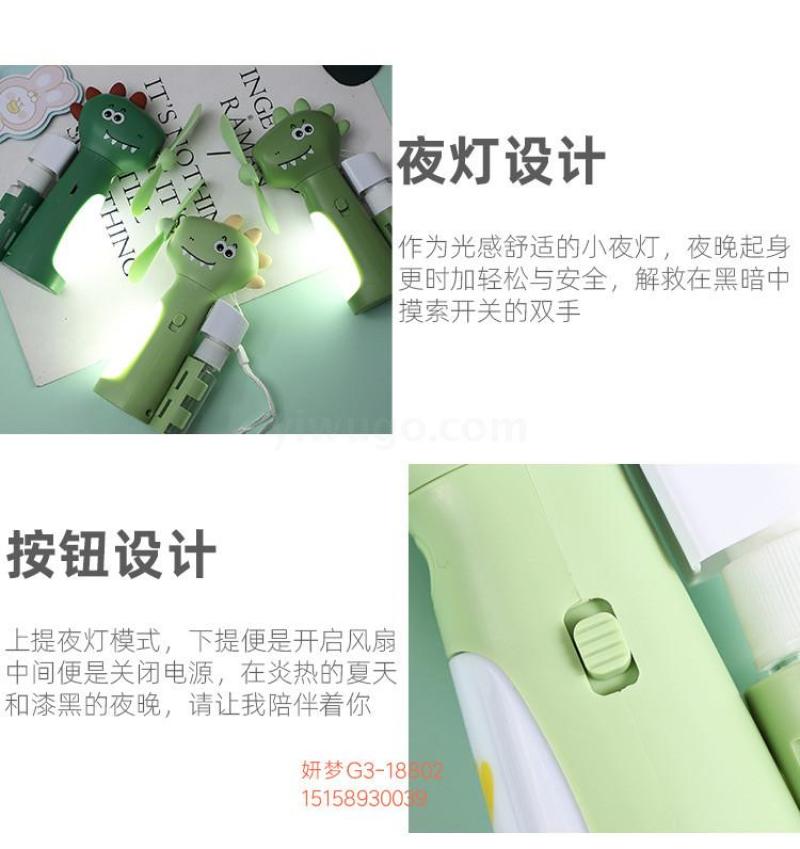 超萌恐龙喷水风扇可usb充电可爱学生创意夜灯随身便携迷你小风扇
