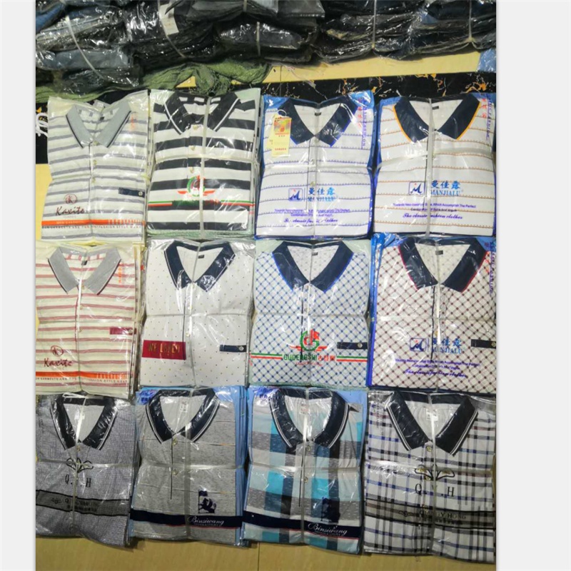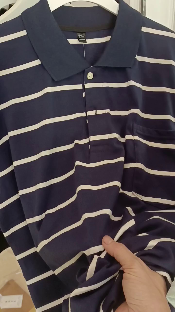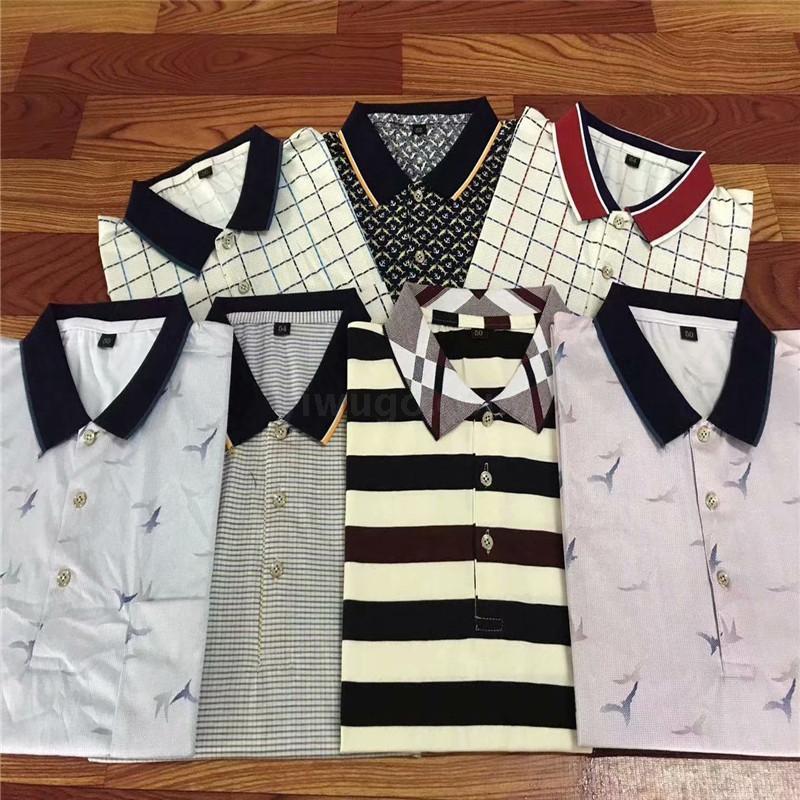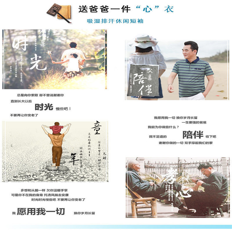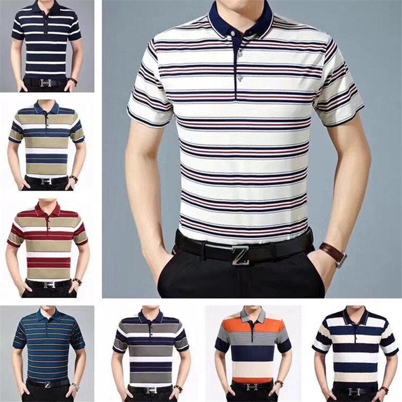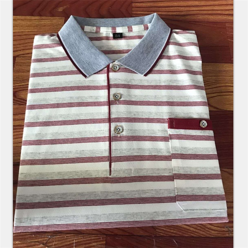 2025短袖男士商务休闲翻领口袋t恤中老年棉条纹工厂直销爸爸装