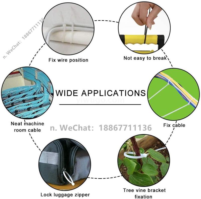 7.扎带广泛用于圣诞礼品厂、电子厂、线材加工厂、电线电缆、玩具厂、喜庆节日、文具百货、生鲜超市、民居日用、电工电器、接插件等物品的捆扎。