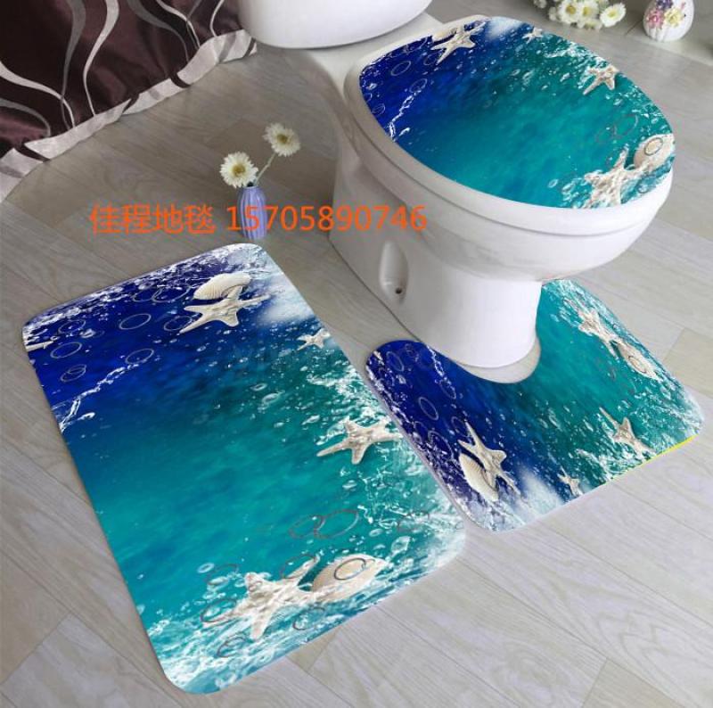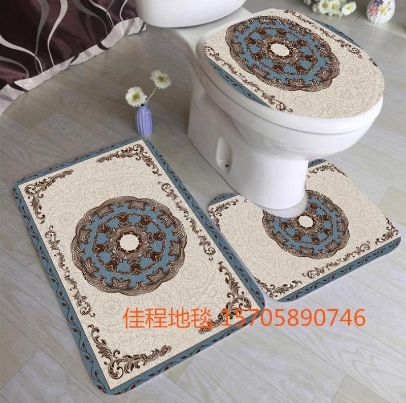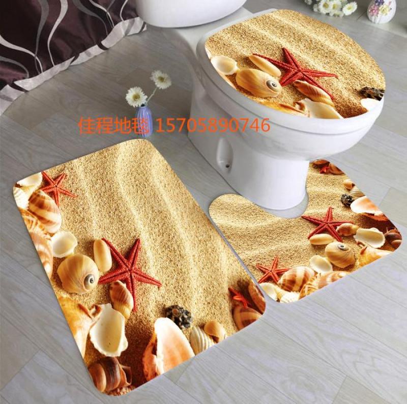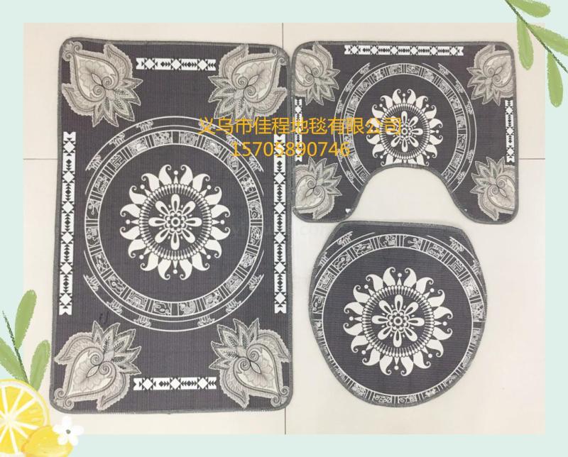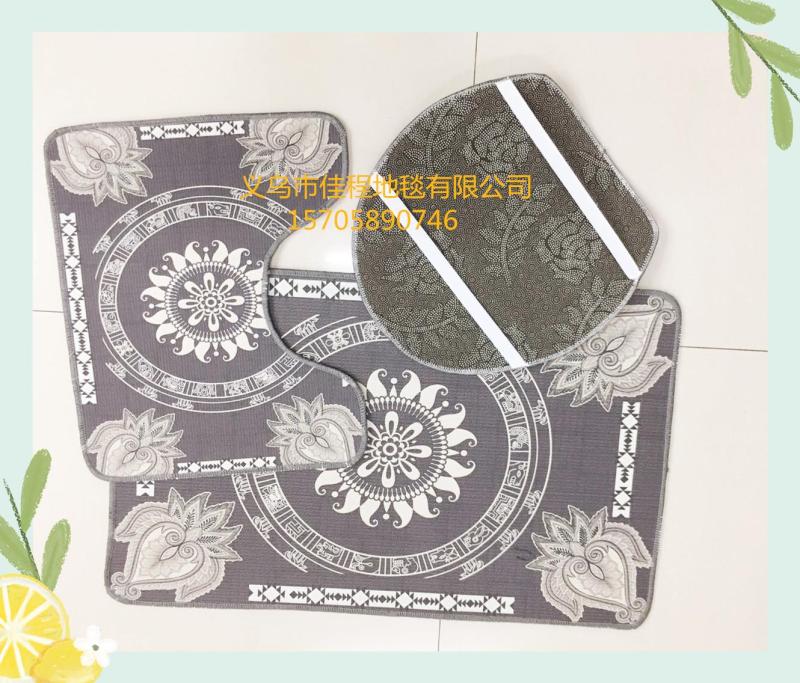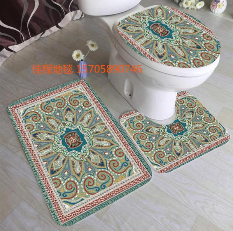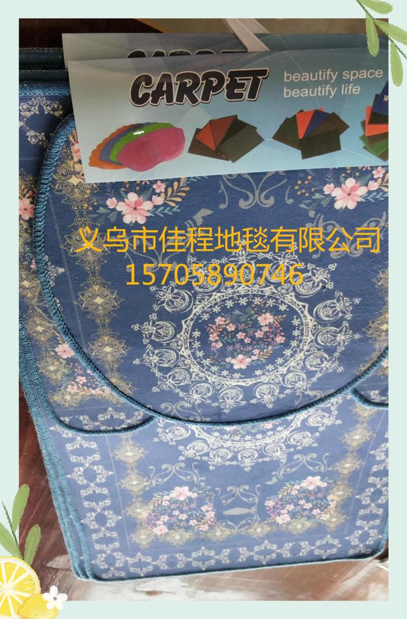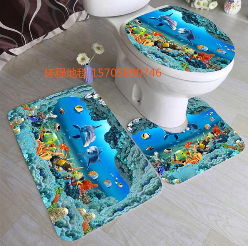 畅销新款水晶绒印花组合垫 马桶3件套 防滑组合地垫 门垫外贸组合垫 无仿布点塑底 防滑效果好水晶绒印花 锁边组合地垫 尺寸50*80/40*50/40*38cm,一件50套,混图案(波斯图案/海洋/花/景物/动物)编织袋打包。联系电话15705890746