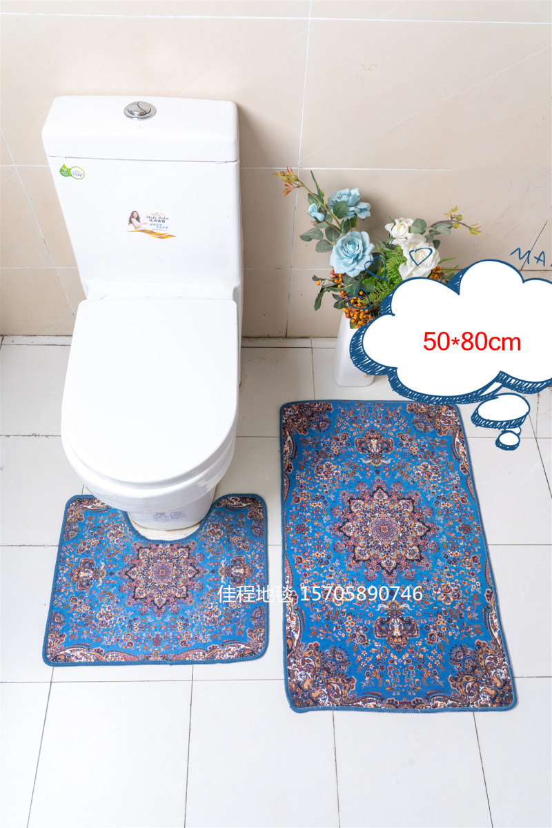 热卖水晶绒印花马桶三件套50*80cm系列 防滑组合地垫印花门垫脚垫