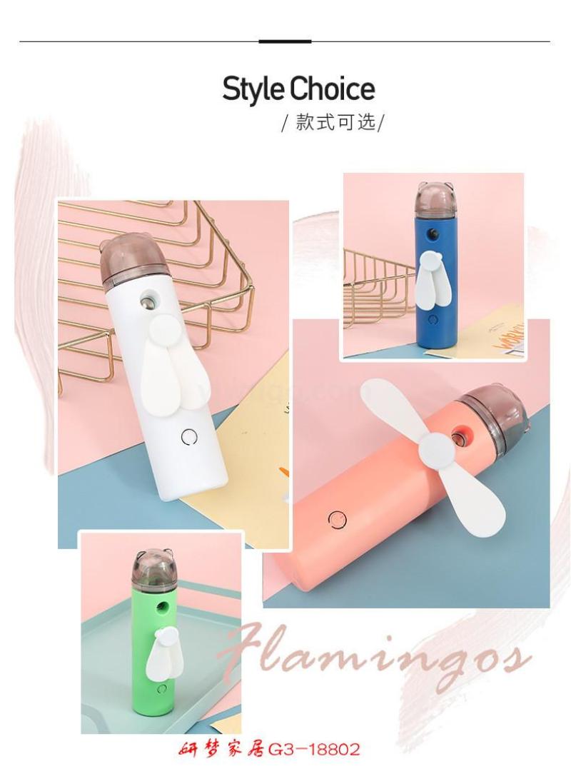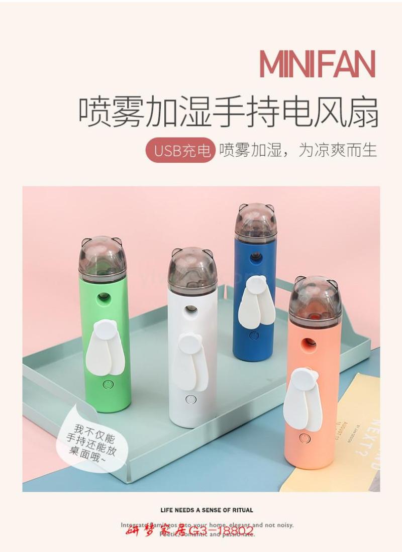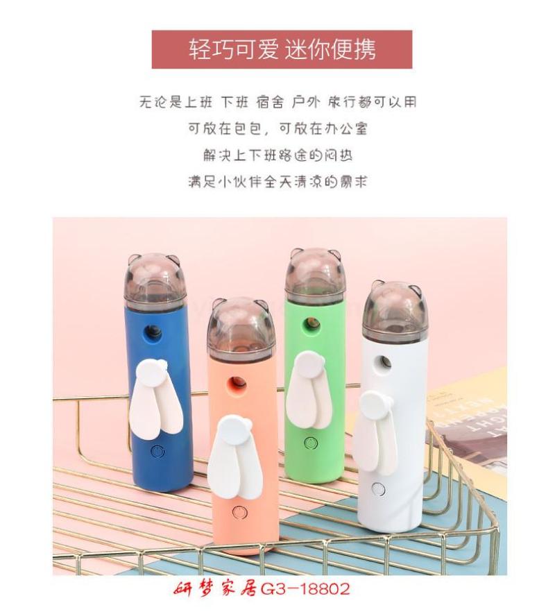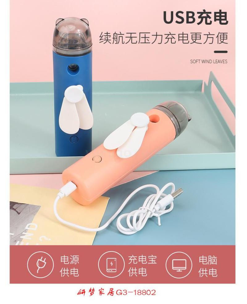 卡通迷你喷雾加湿电风扇送USB充电线便携手持喷雾风扇
