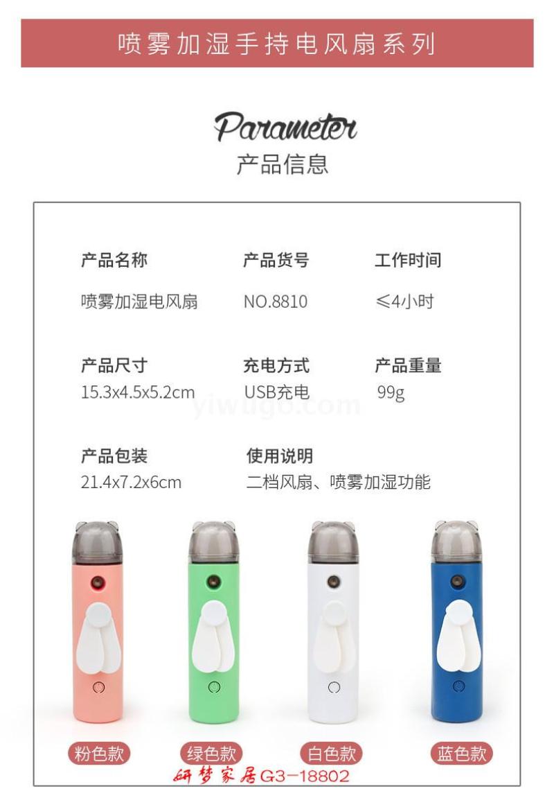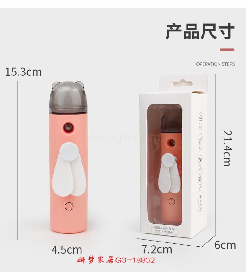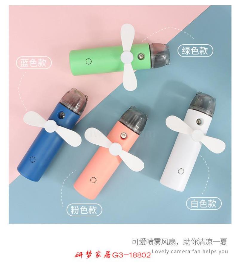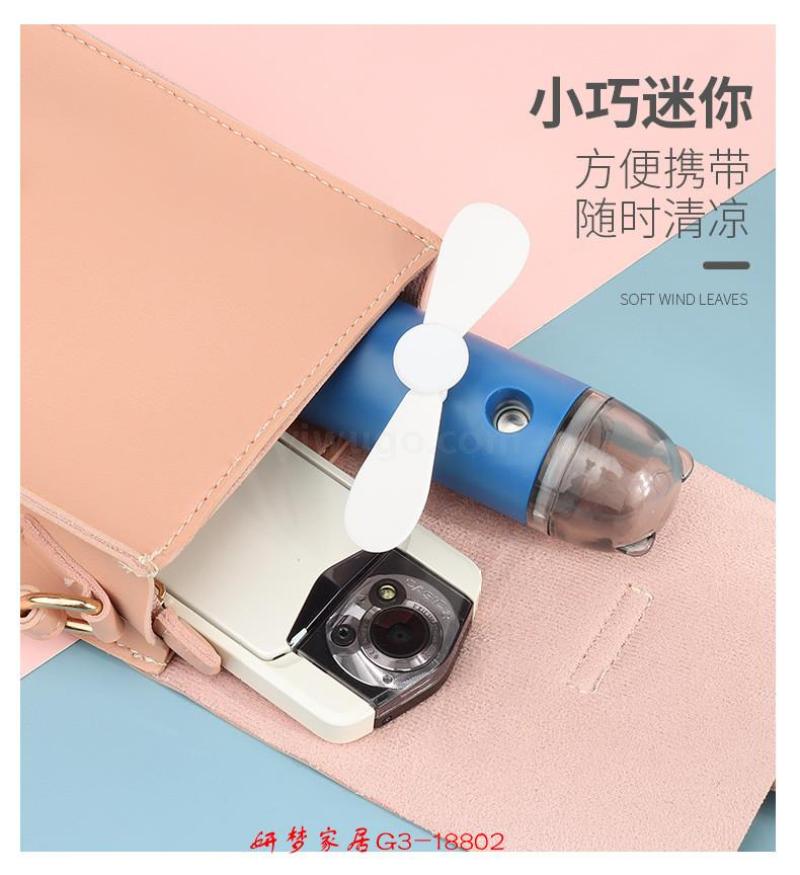 卡通迷你喷雾加湿电风扇送USB充电线便携手持喷雾风扇