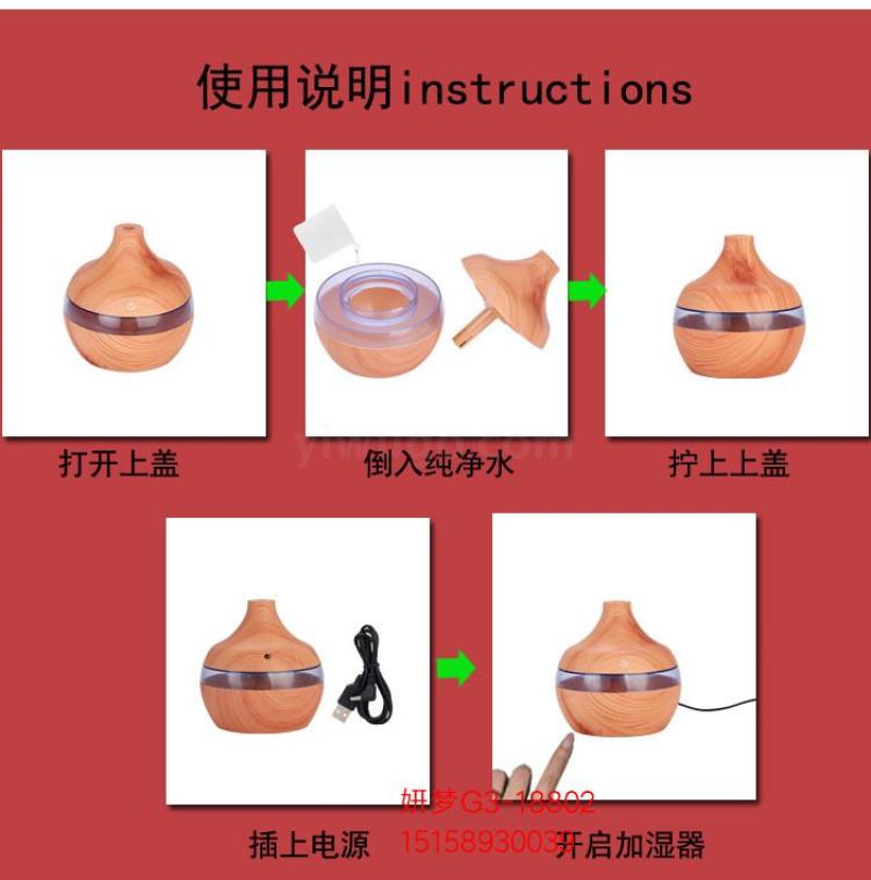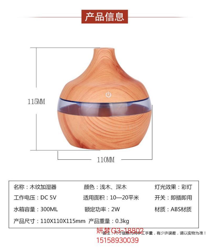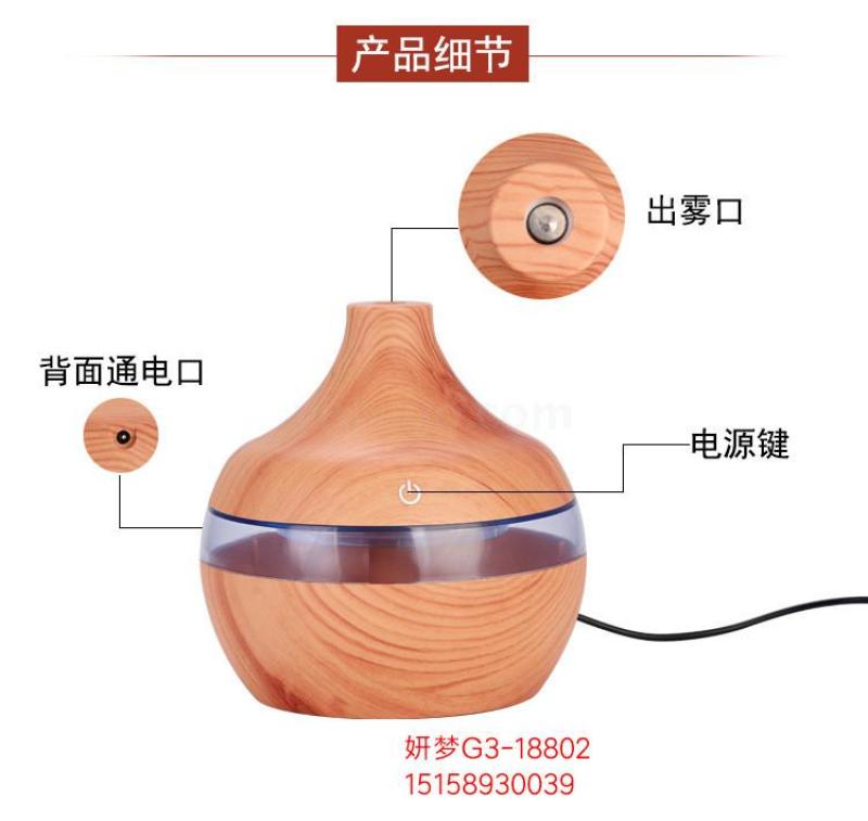 办公室桌面加湿器USB木纹水滴加湿器静音补水喷雾迷你木纹加湿器