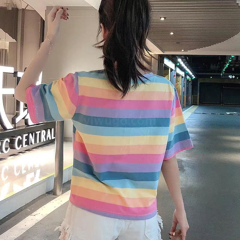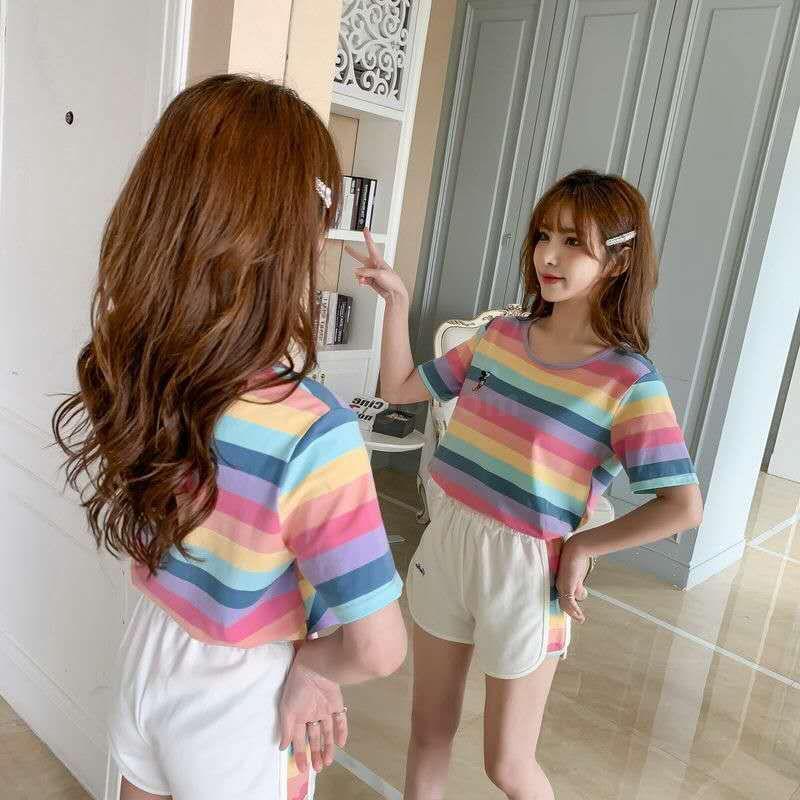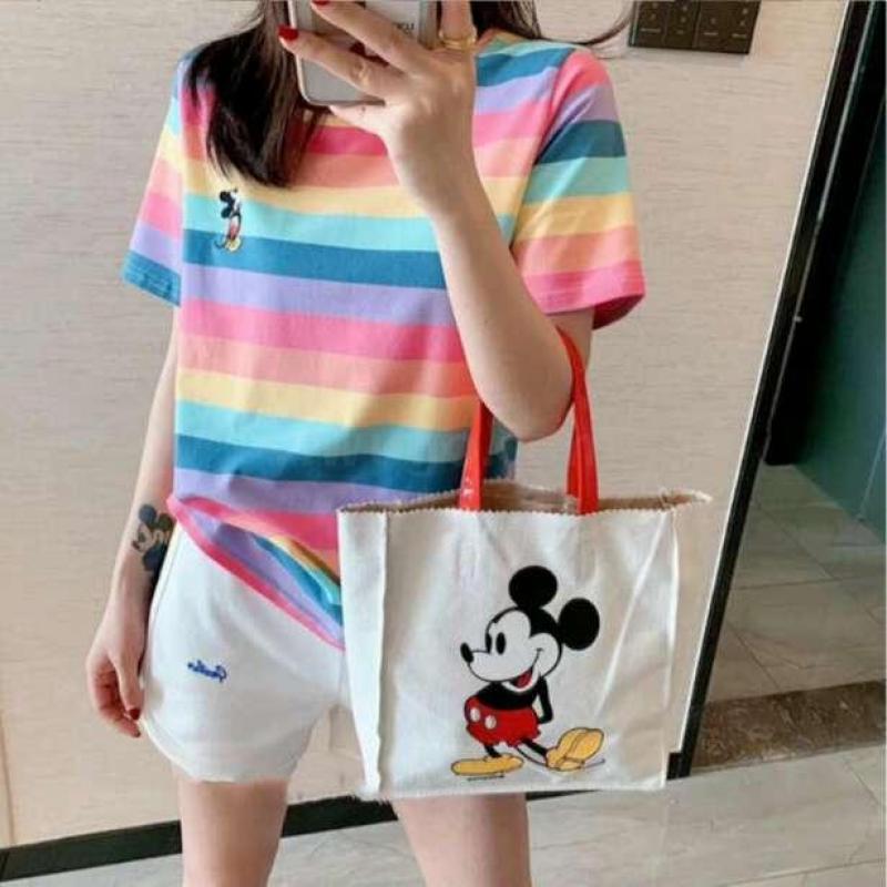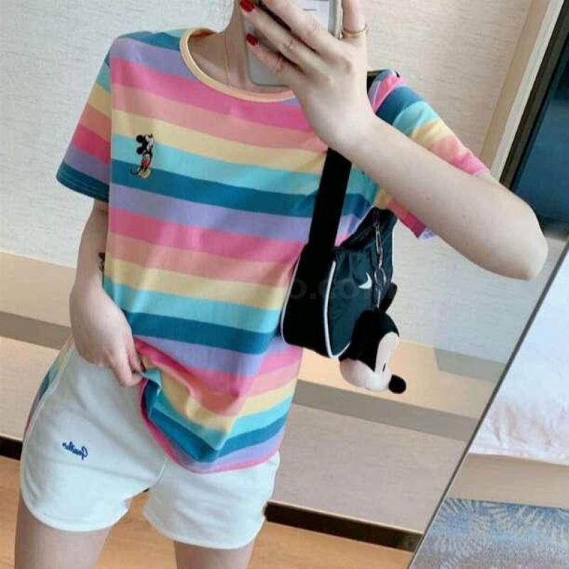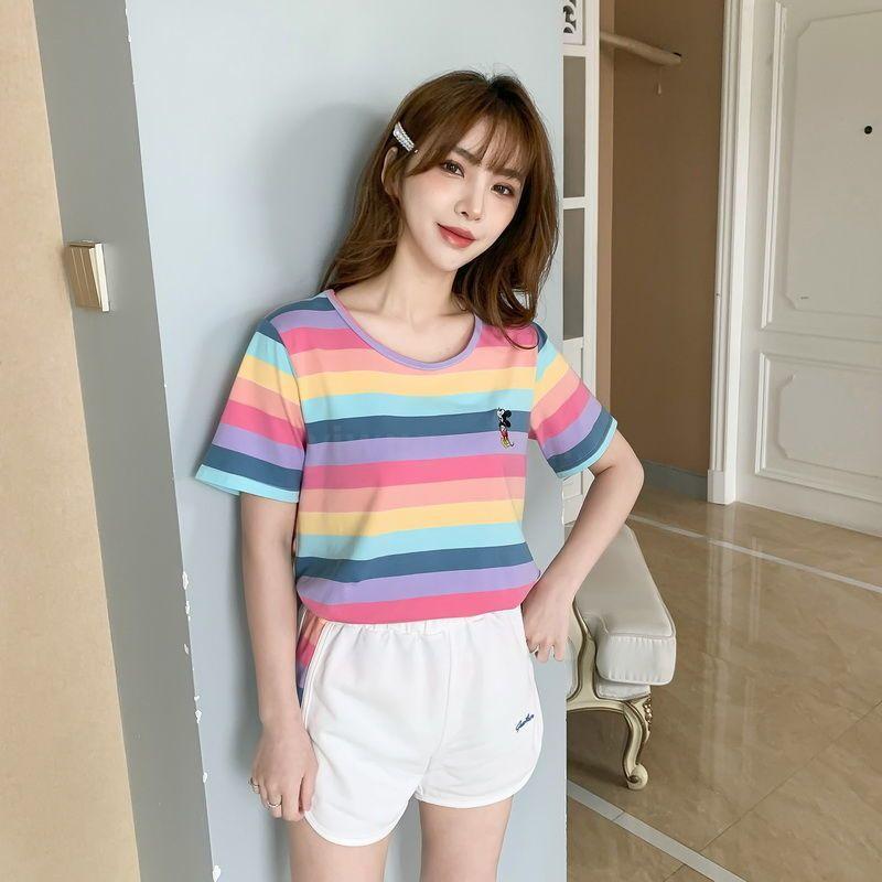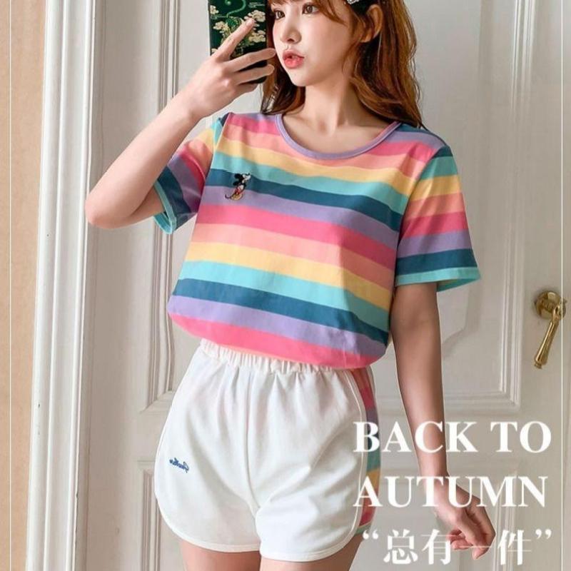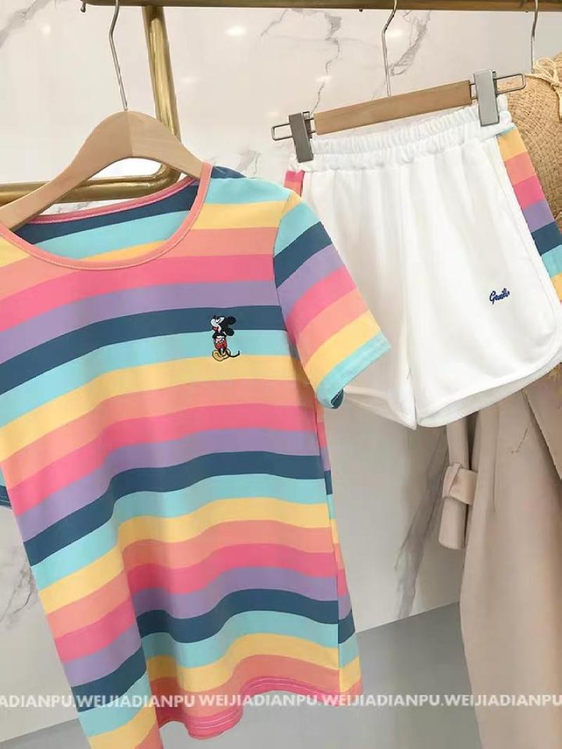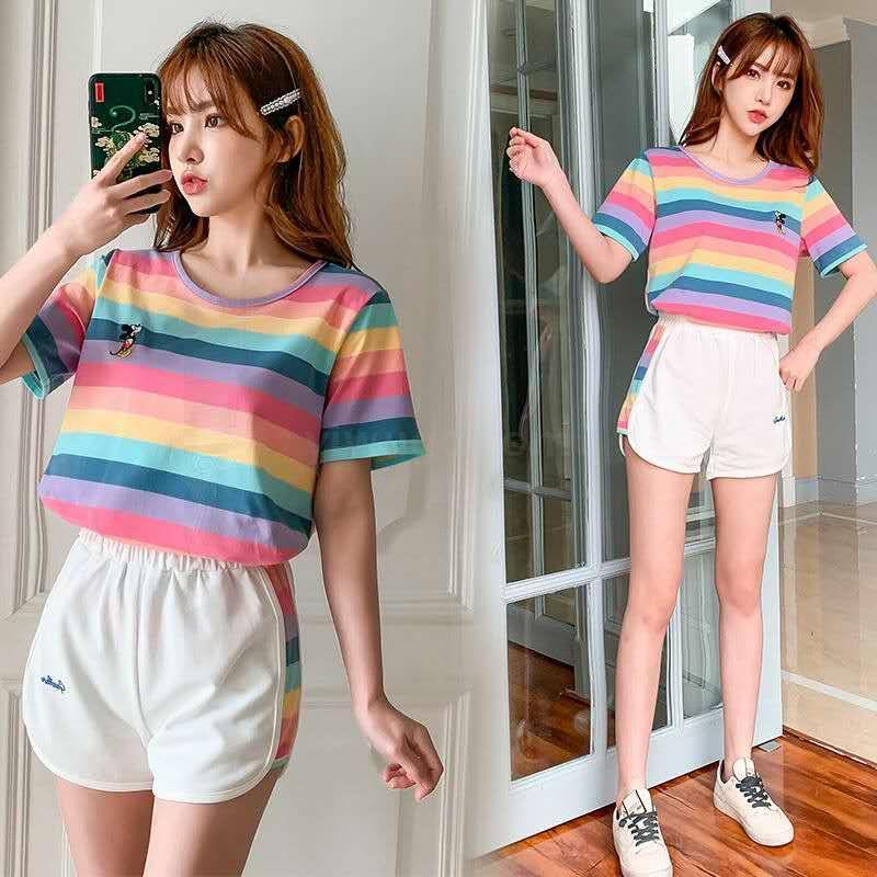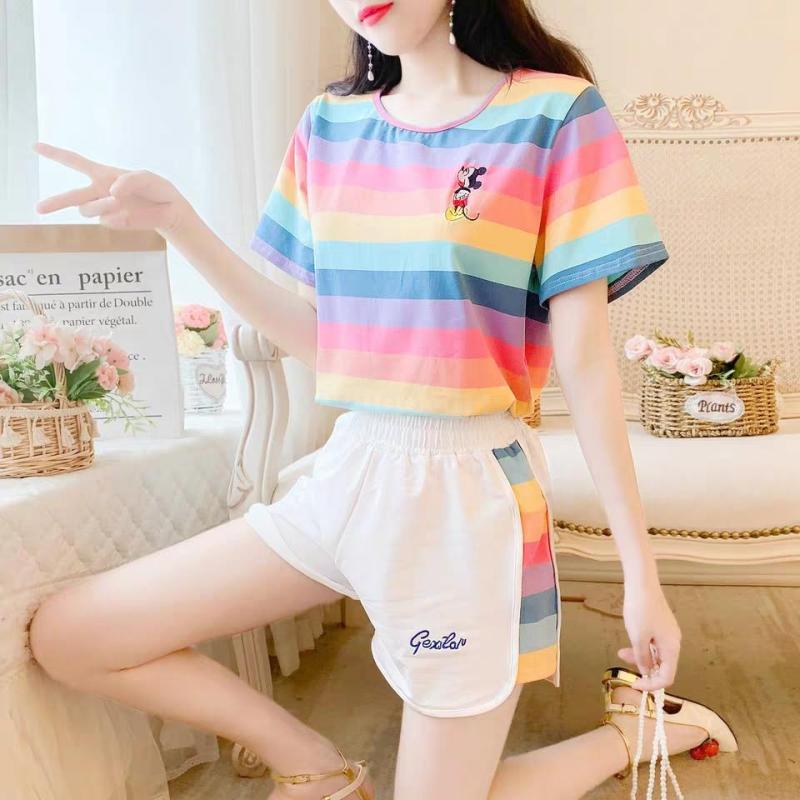 小米奇彩虹套装女士圆领t恤短袖短裤两件套夏季短袖短裤