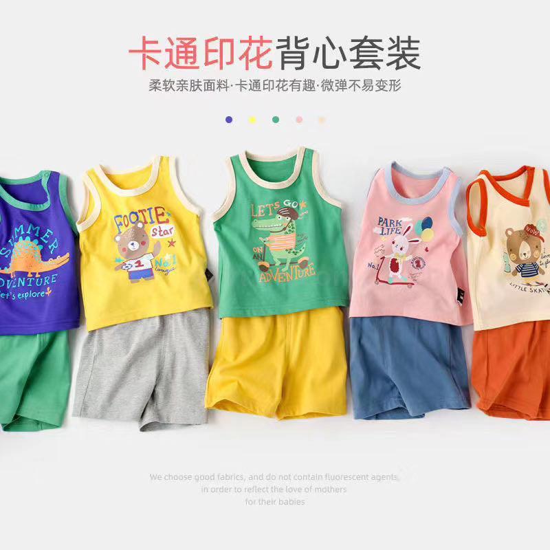 2025童装夏季新款儿童套装背心男孩女孩韩版卡通洋气休闲背心套装