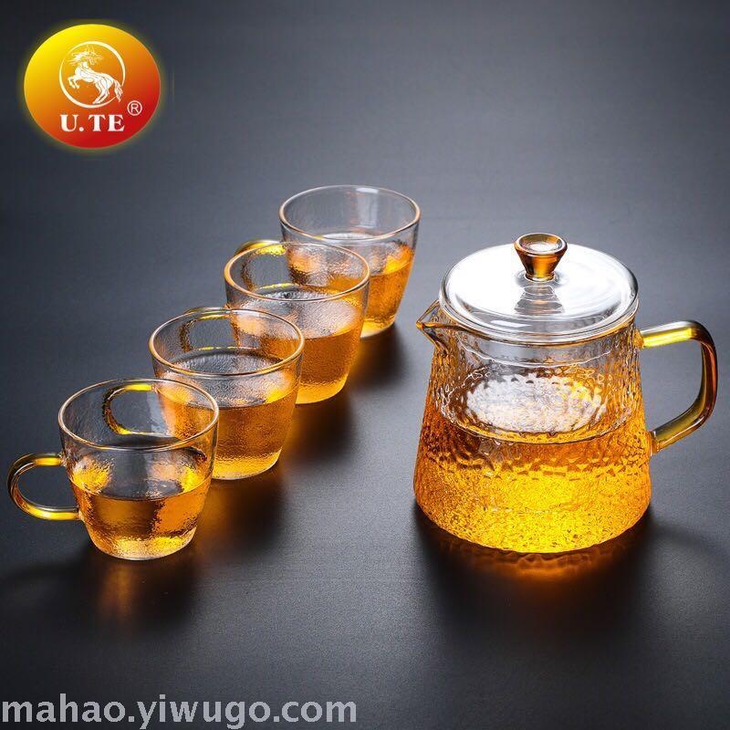 高硼硅玻璃手工锤纹茶具套装 1壶4杯