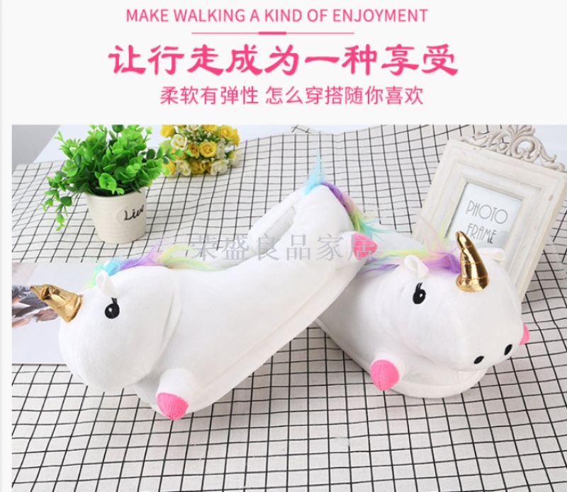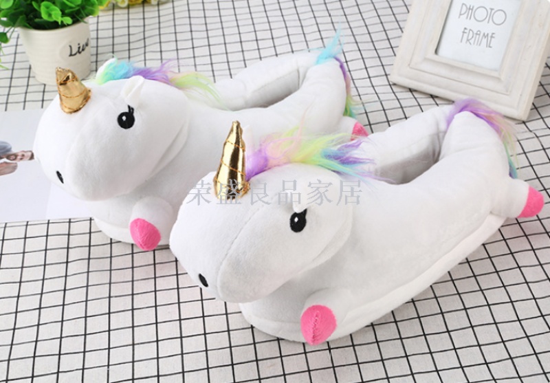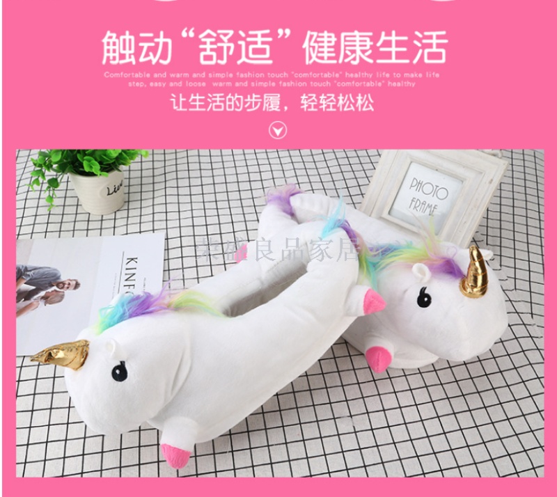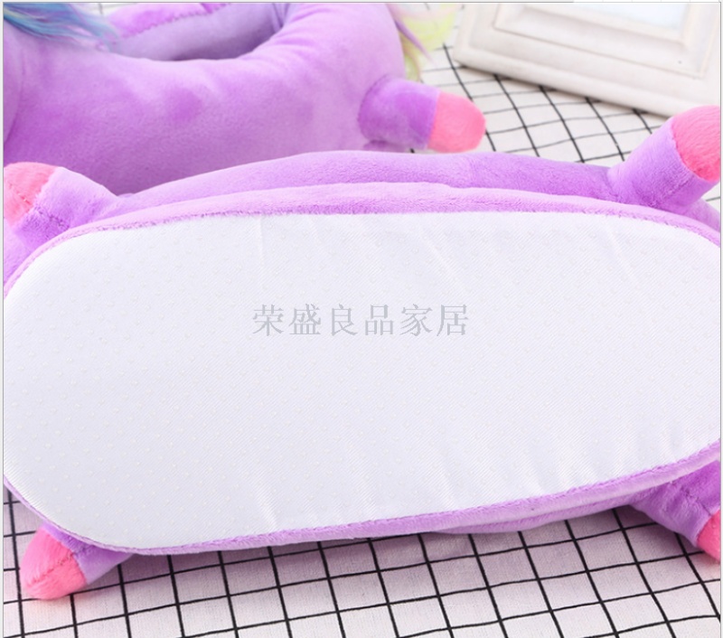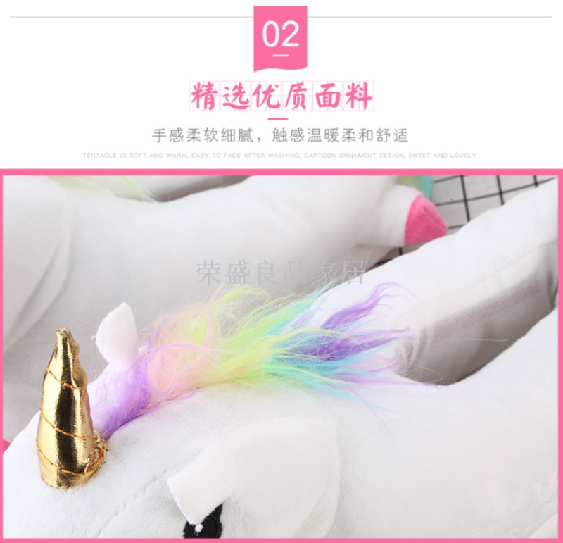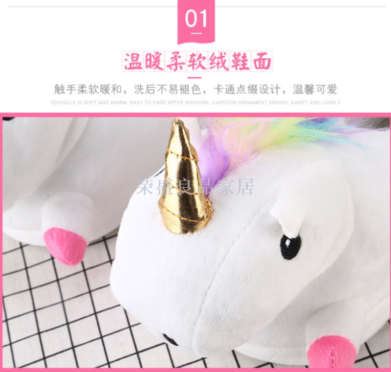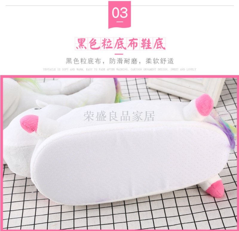 冬季新款家居保暖棉拖鞋 防滑四脚独角兽棉鞋 全包跟白色毛拖鞋