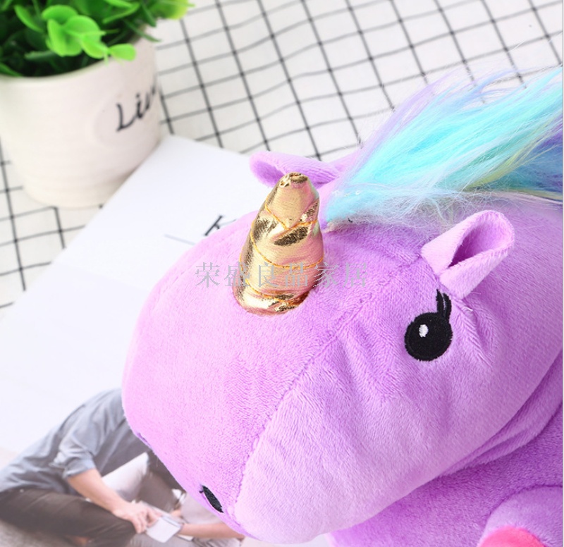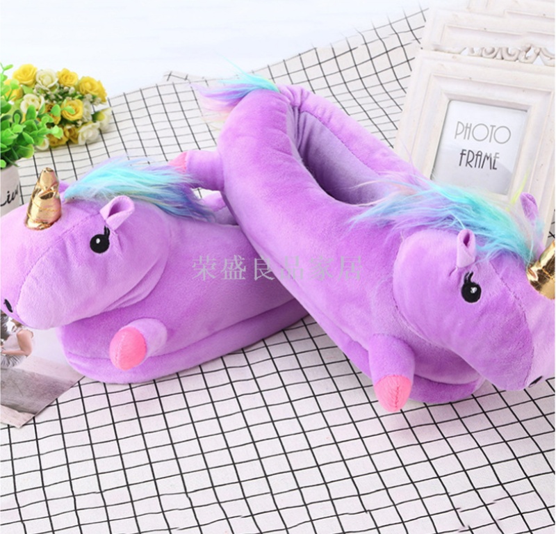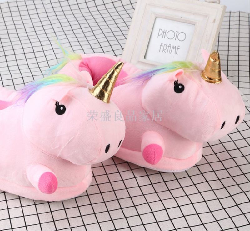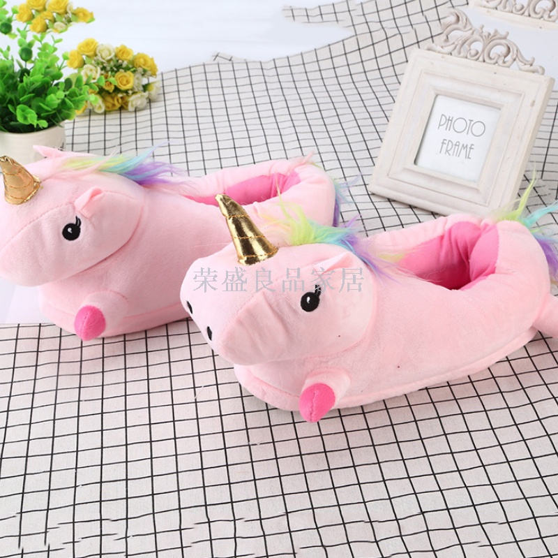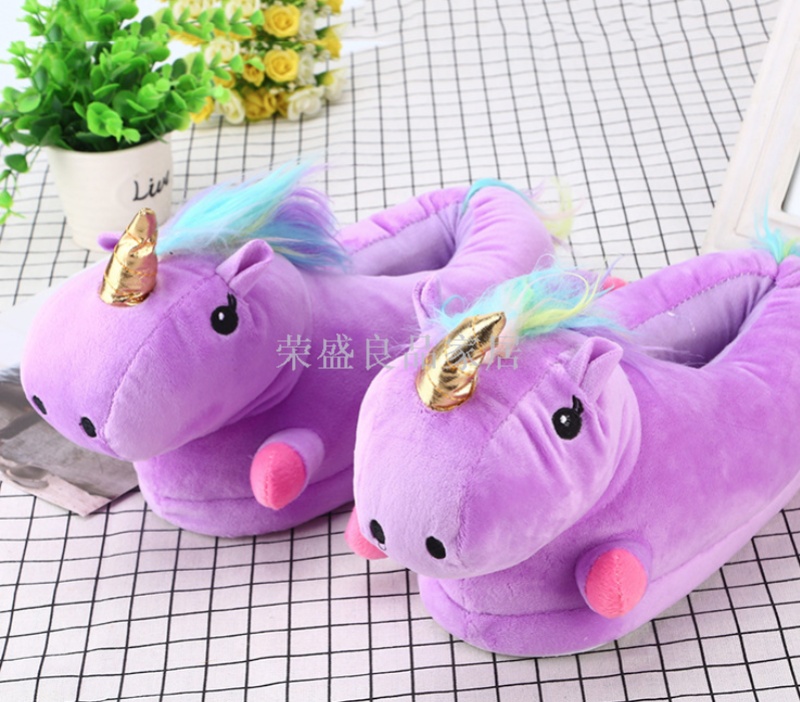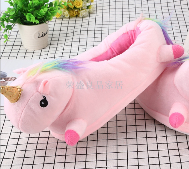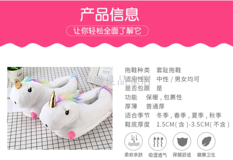 冬季新款家居保暖棉拖鞋 防滑四脚独角兽棉鞋 全包跟白色毛拖鞋