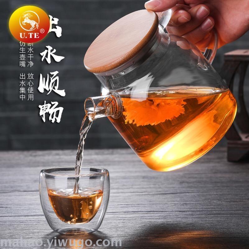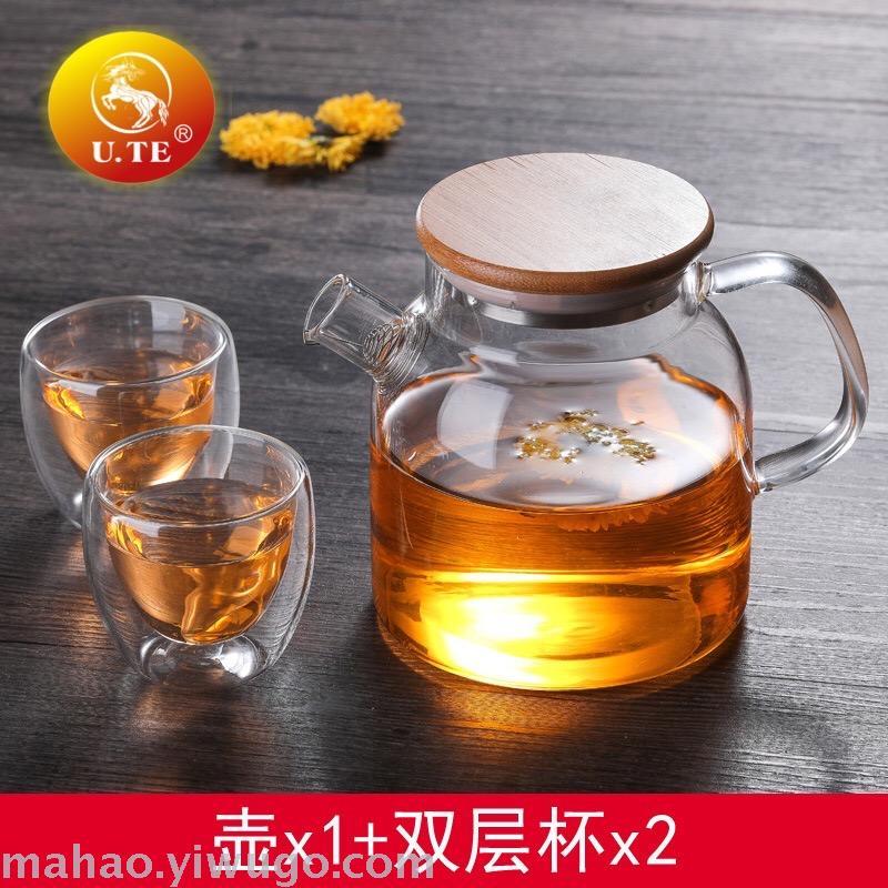 高硼硅玻璃茶壶套装配2个双层防爆茶杯