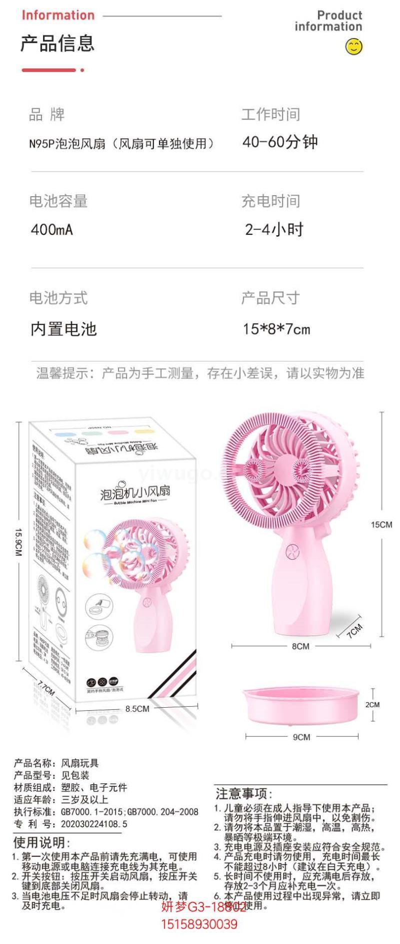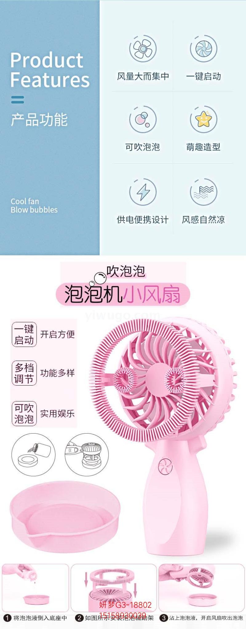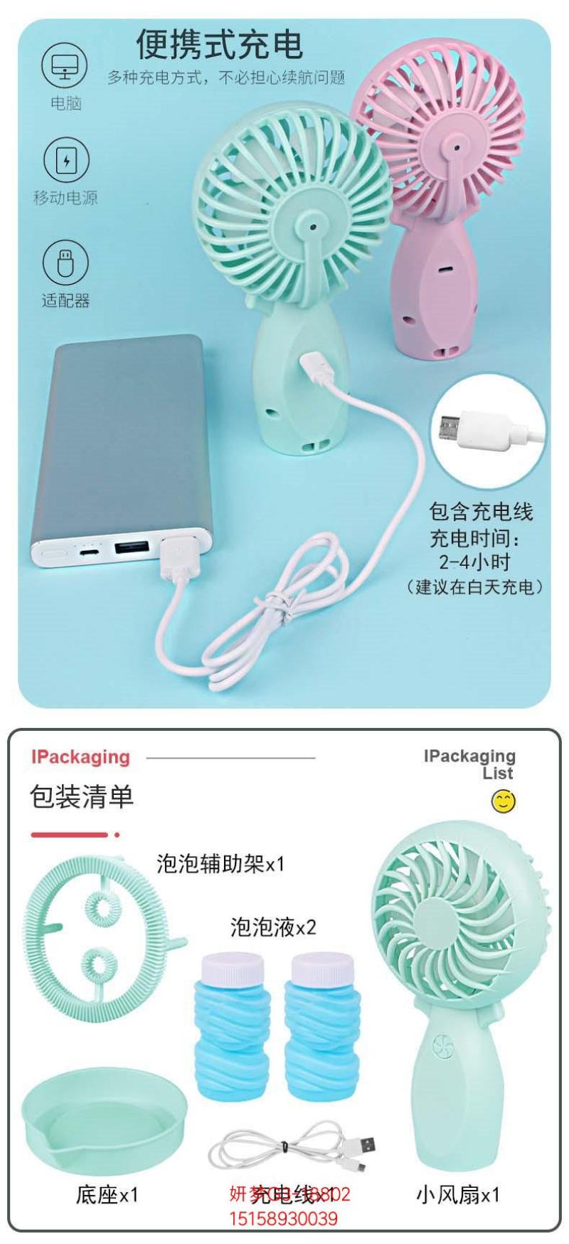 儿童玩具泡泡机风扇 可爱夏季便携USB户外萌萌哒卡通儿童吹泡泡
