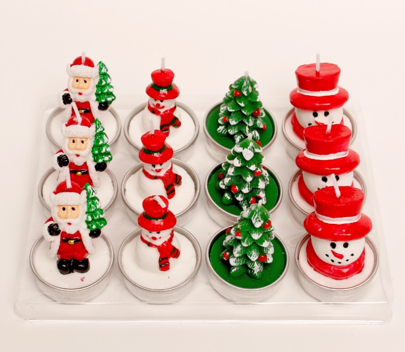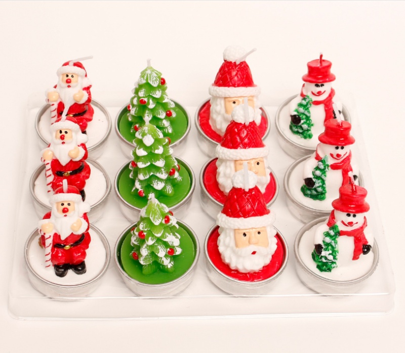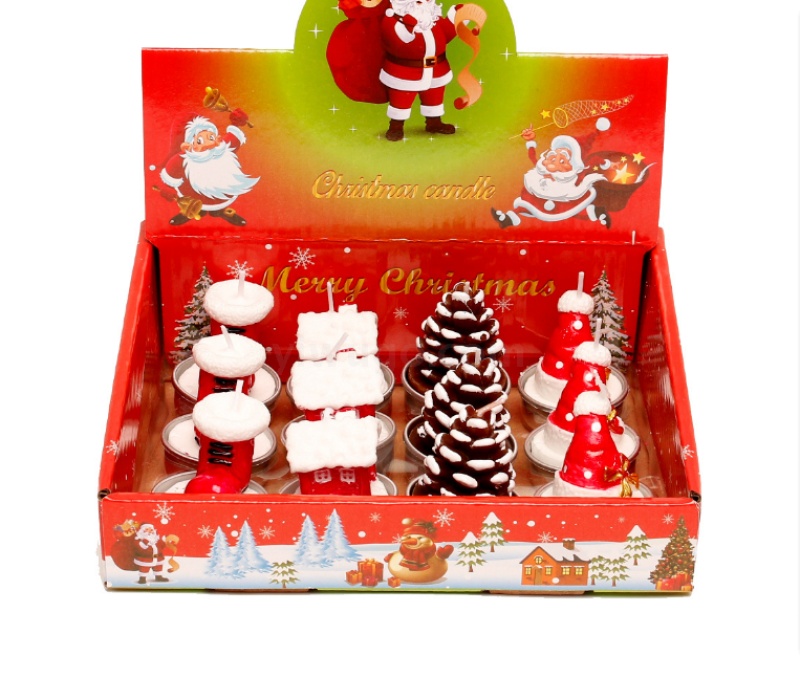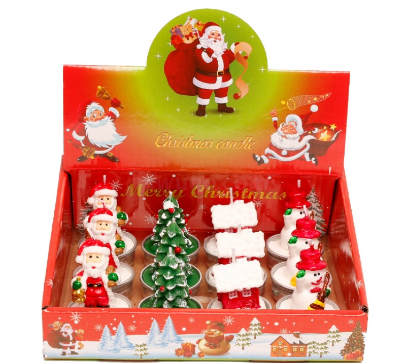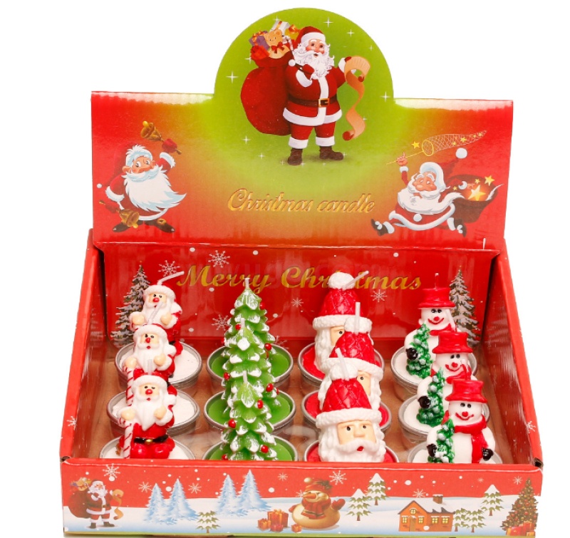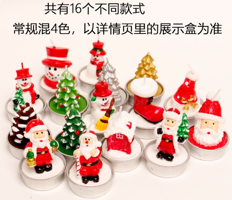 圣诞蜡烛摆件 12只礼盒装 彩绘铝壳雪人老人圣诞树装饰工艺蜡烛