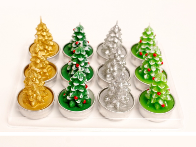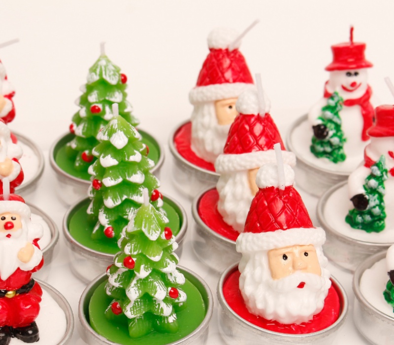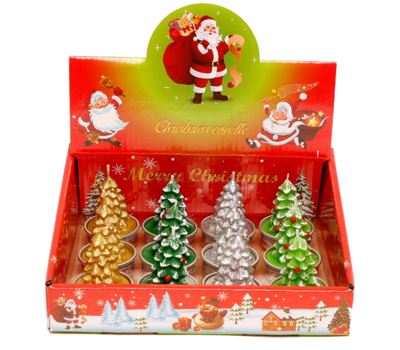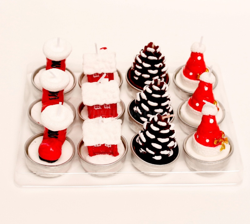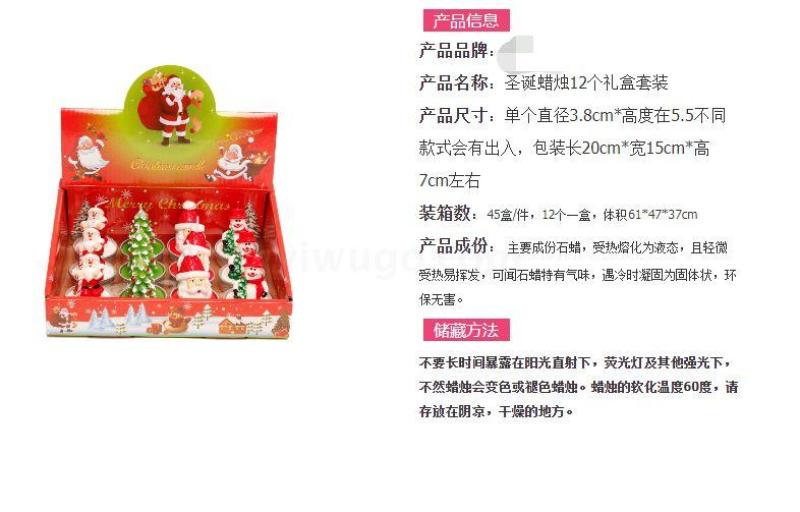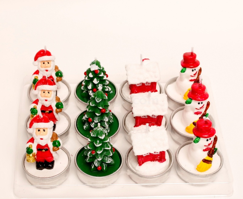 圣诞蜡烛摆件 12只礼盒装 彩绘铝壳雪人老人圣诞树装饰工艺蜡烛