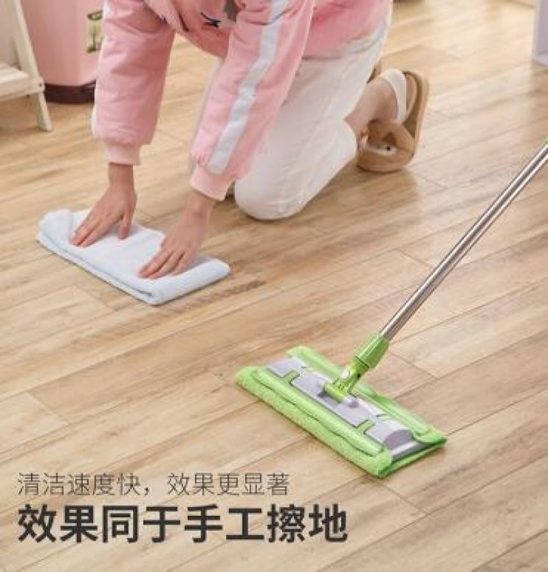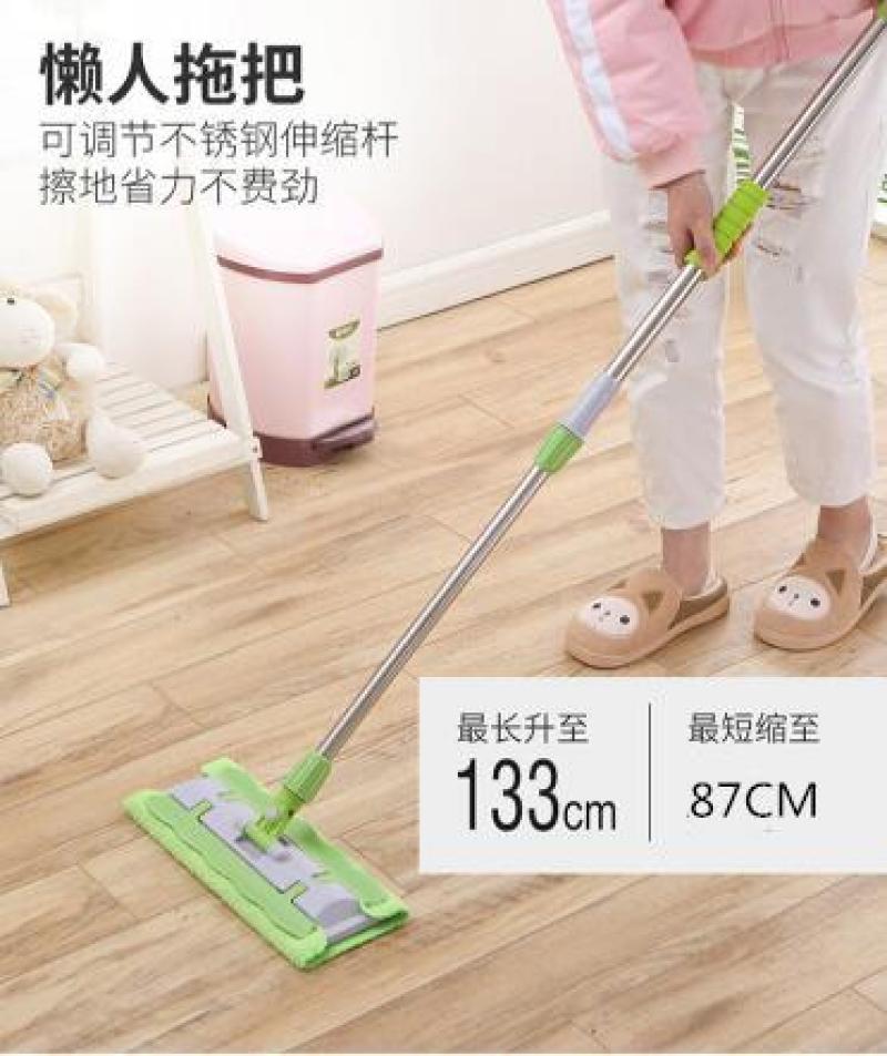 拖把平拖夹固式毛巾拖把超细纤维夹板平拖 伸缩不锈钢杆平拖