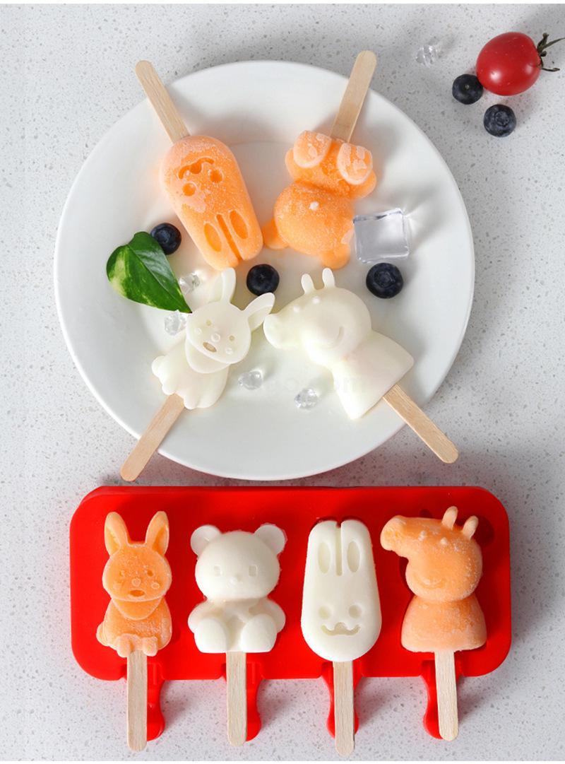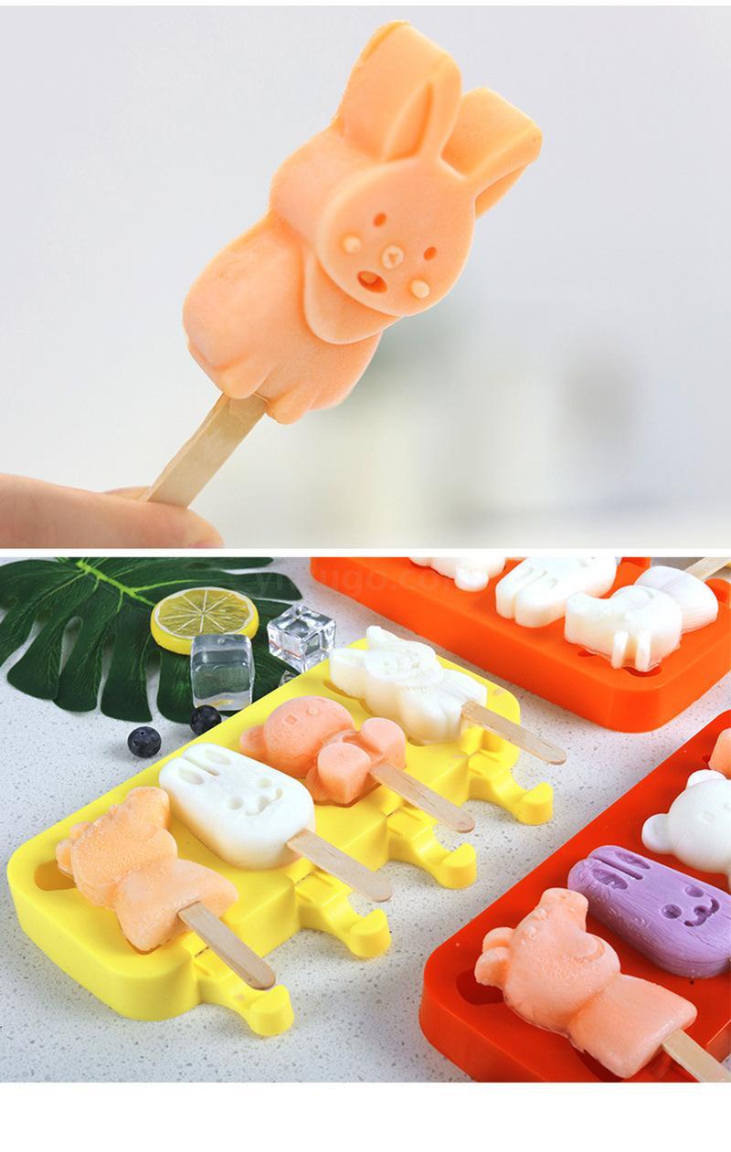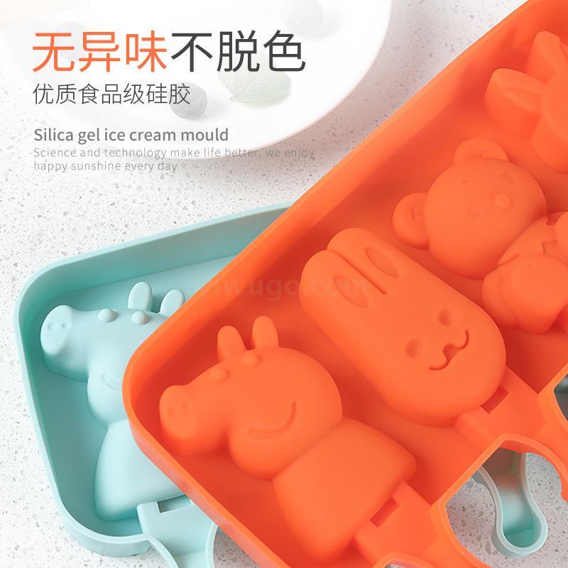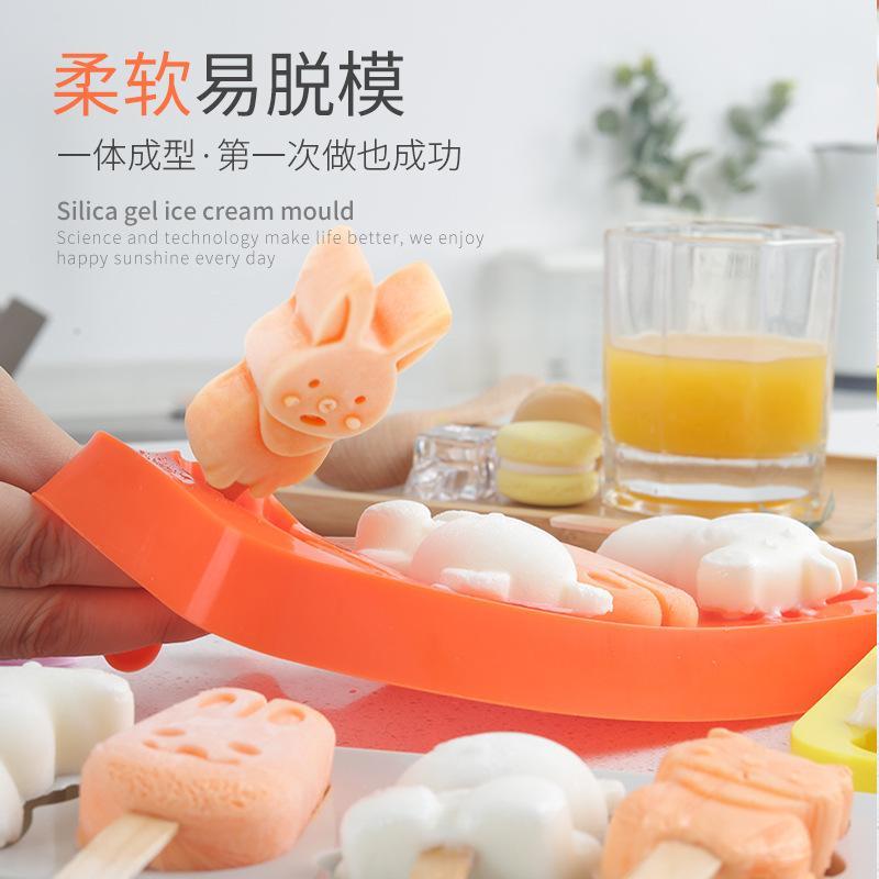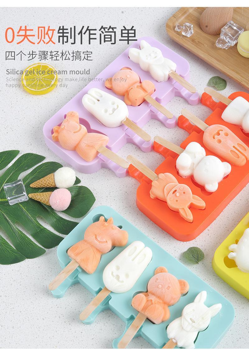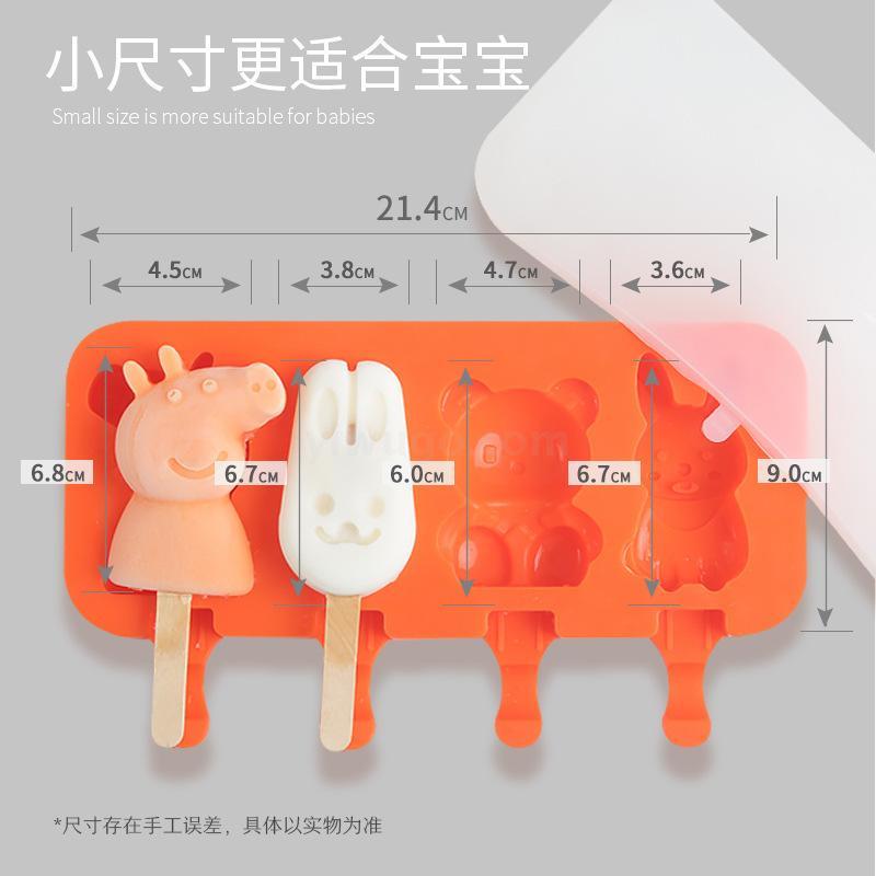 硅胶雪糕模4连卡通冰淇淋棒冰模具DIY自制食品级带盖配50根棍子