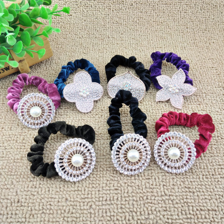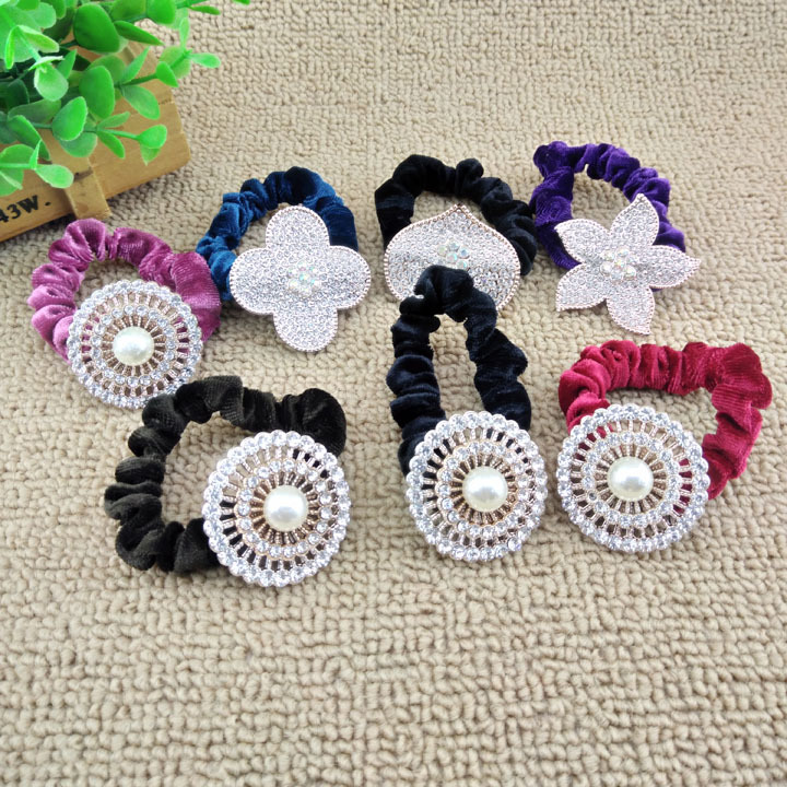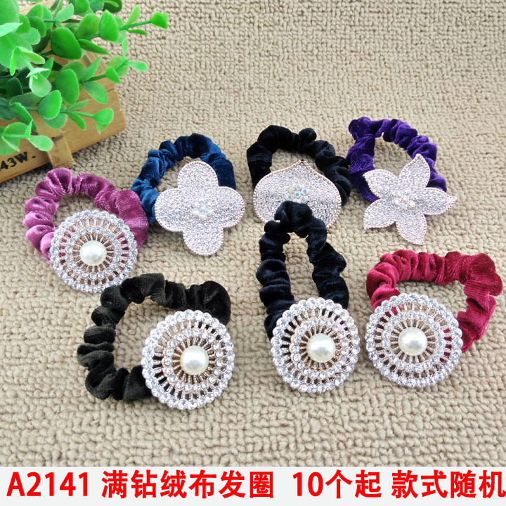 A2141 满钻绒布发圈 布艺盘发头饰职业头花皮筋二元店批发配货