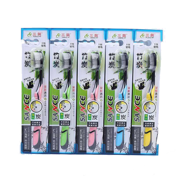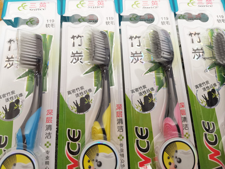 D2115 精品竹炭牙刷 成人家用旅行细丝软毛洁净2元店百货批发