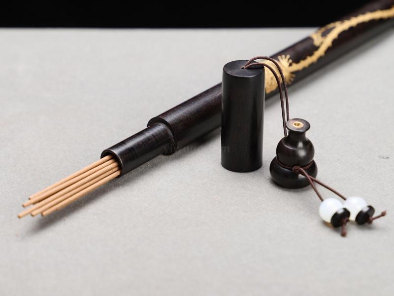 2025合金21cm葫芦香插香筒携带存放线香黑檀刻字长款短款送礼精致