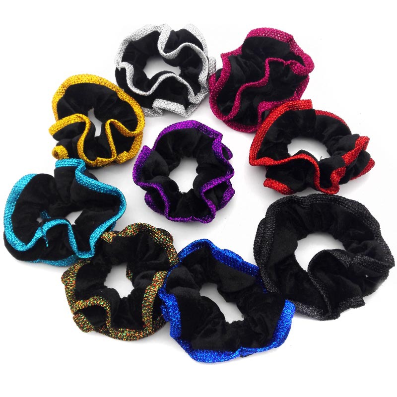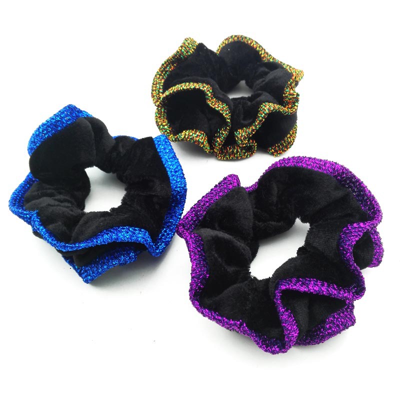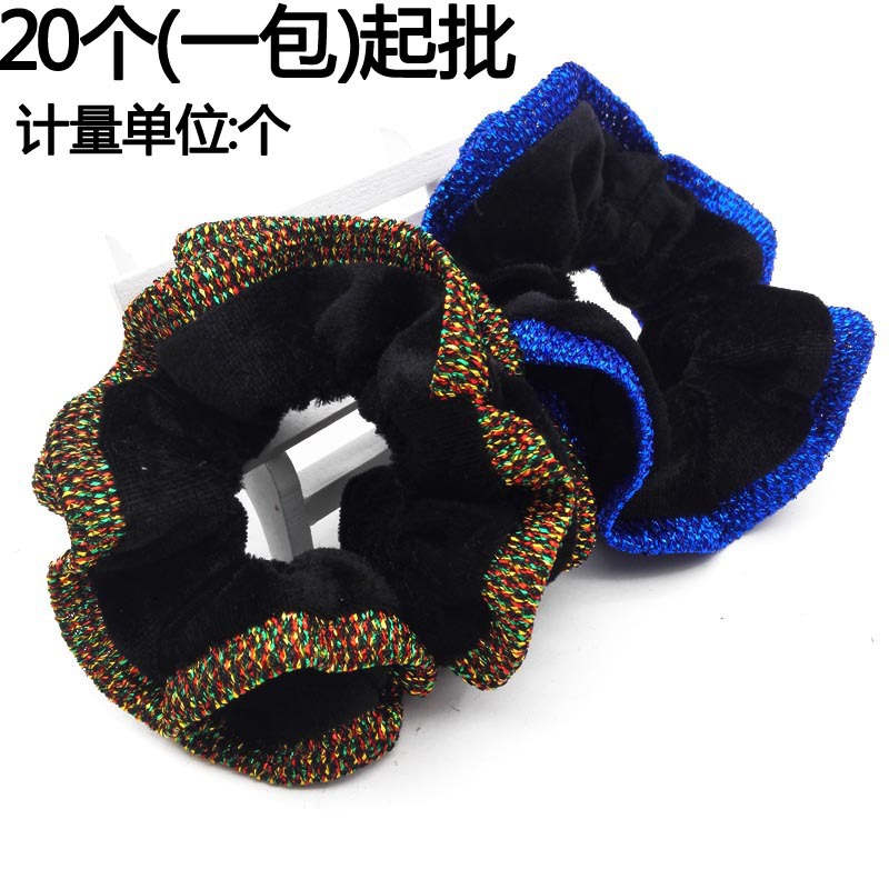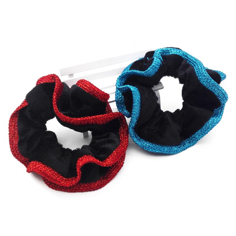 A3746亮丝双边绒布发圈 毛绒皮筋 黑绒布圈 义乌2元 头饰批发