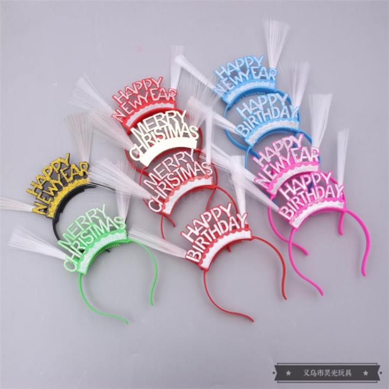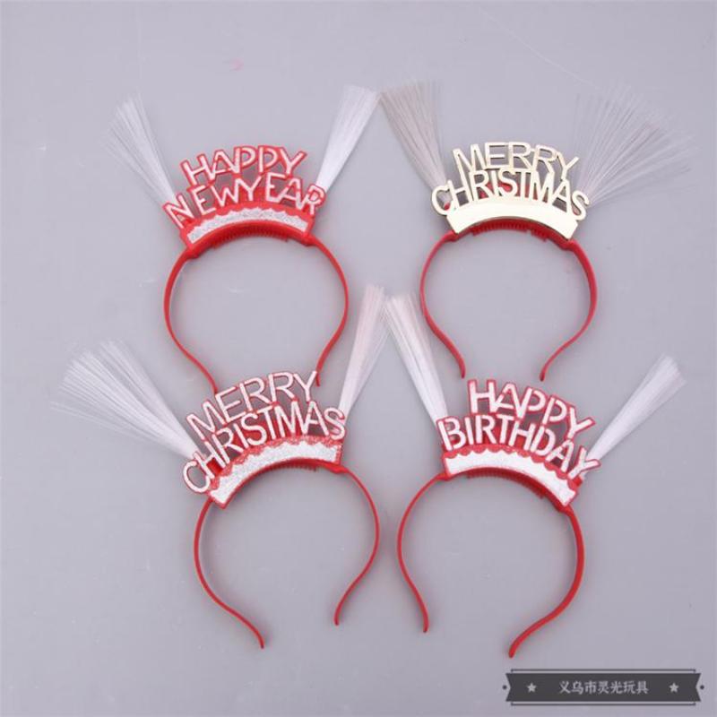 新年圣诞节生日用字母图案可发光发亮头扣发夹发箍 地摊夜市玩具