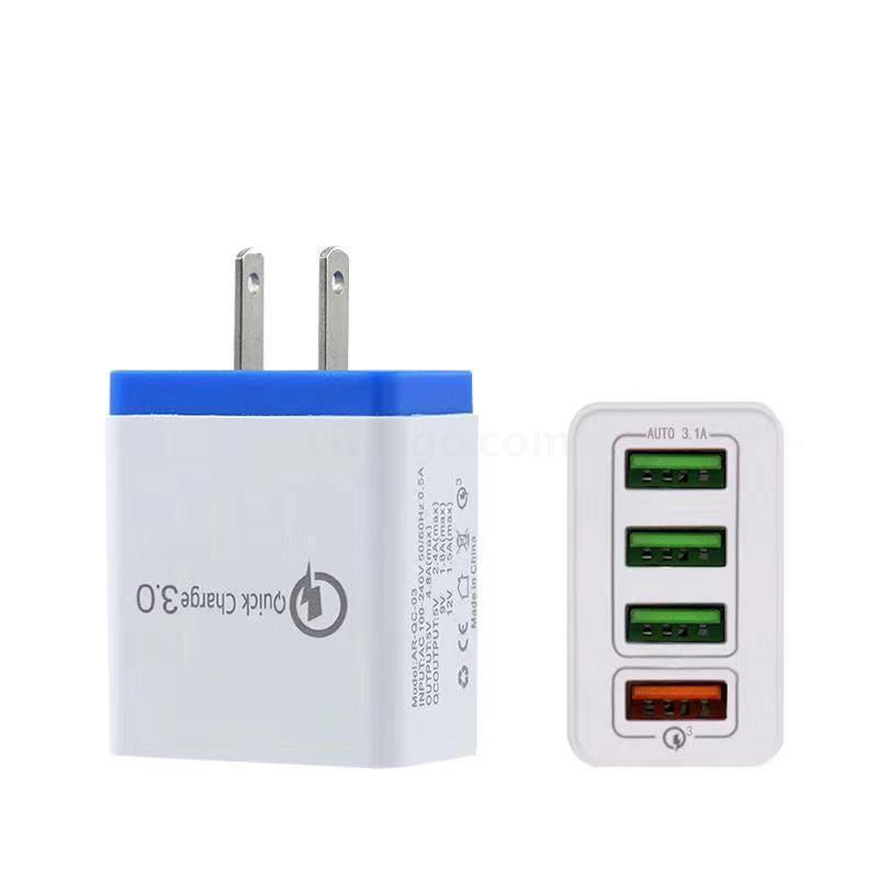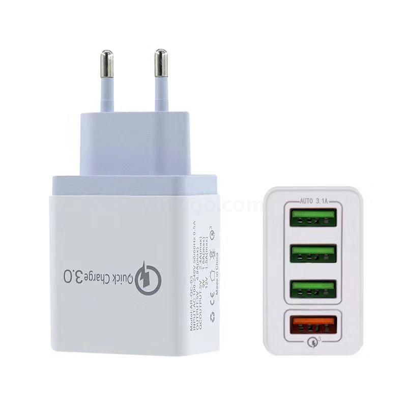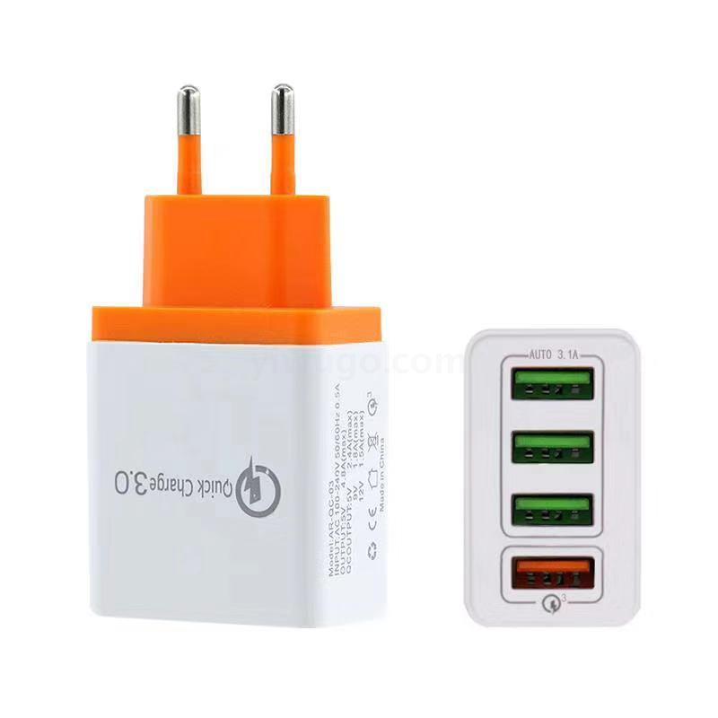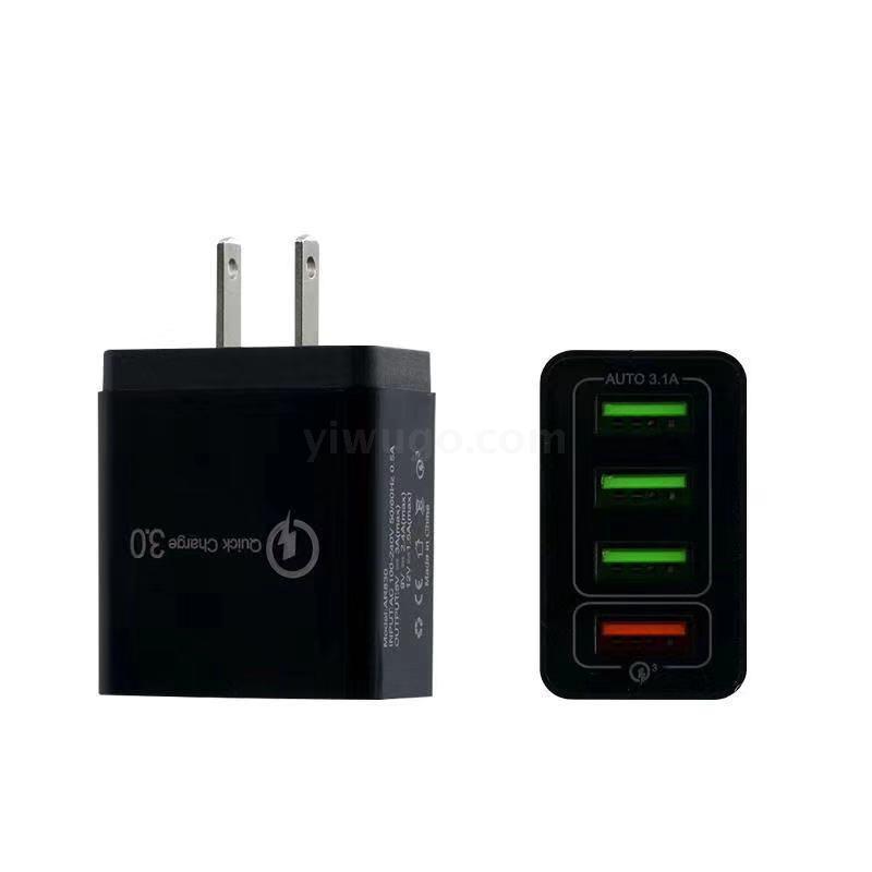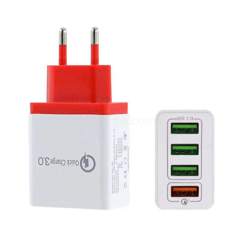 QC3.0快充手机充电器4USB智能欧规 美规 英规充电头旅行充批发