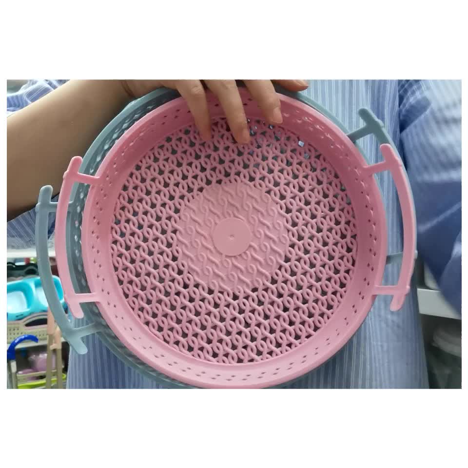 塑料收纳篮新款桌面镂空置物篮仿藤编水果篮时尚热销圆形托盘