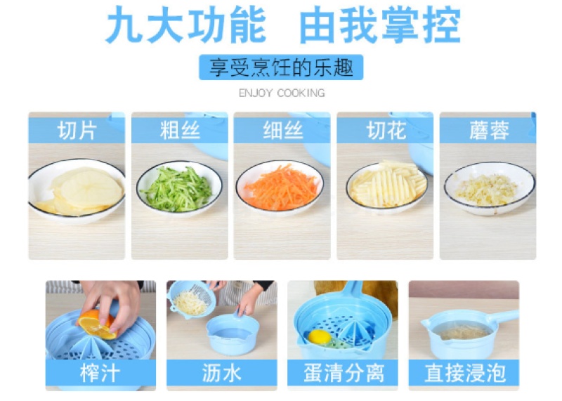 家用多功能切菜料理器土豆蔬菜切片切丝器猫型切菜器九件套切菜器