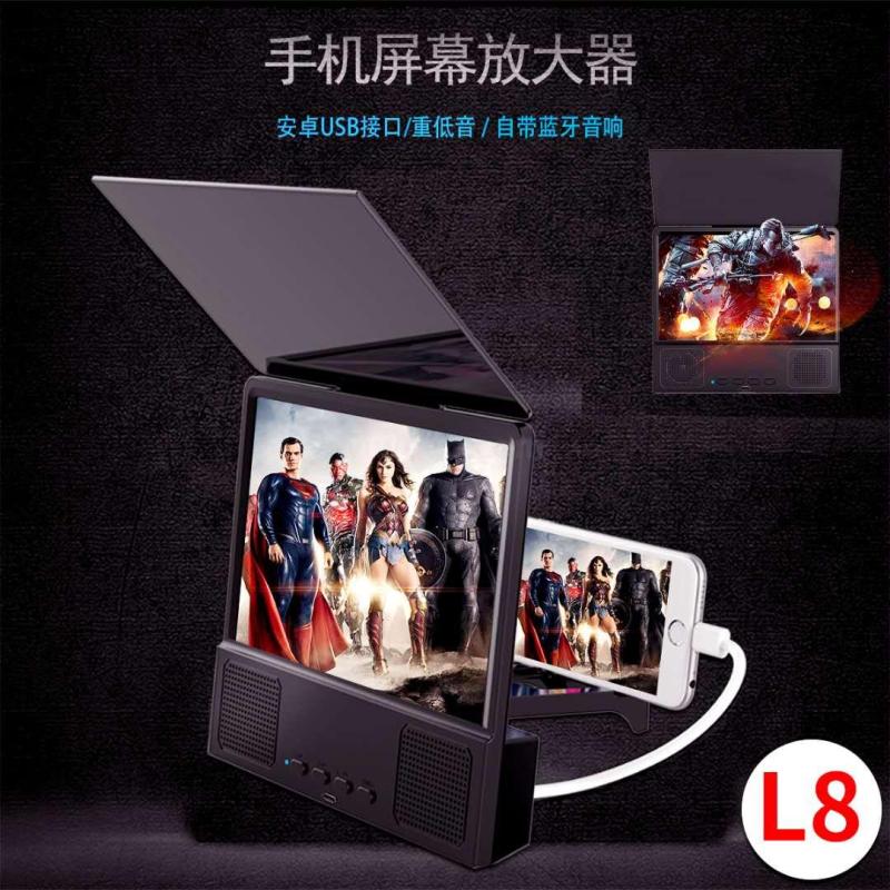厂家直销 8寸手机屏幕放大器音响蓝牙连接高清镜片L8桌面通用支架